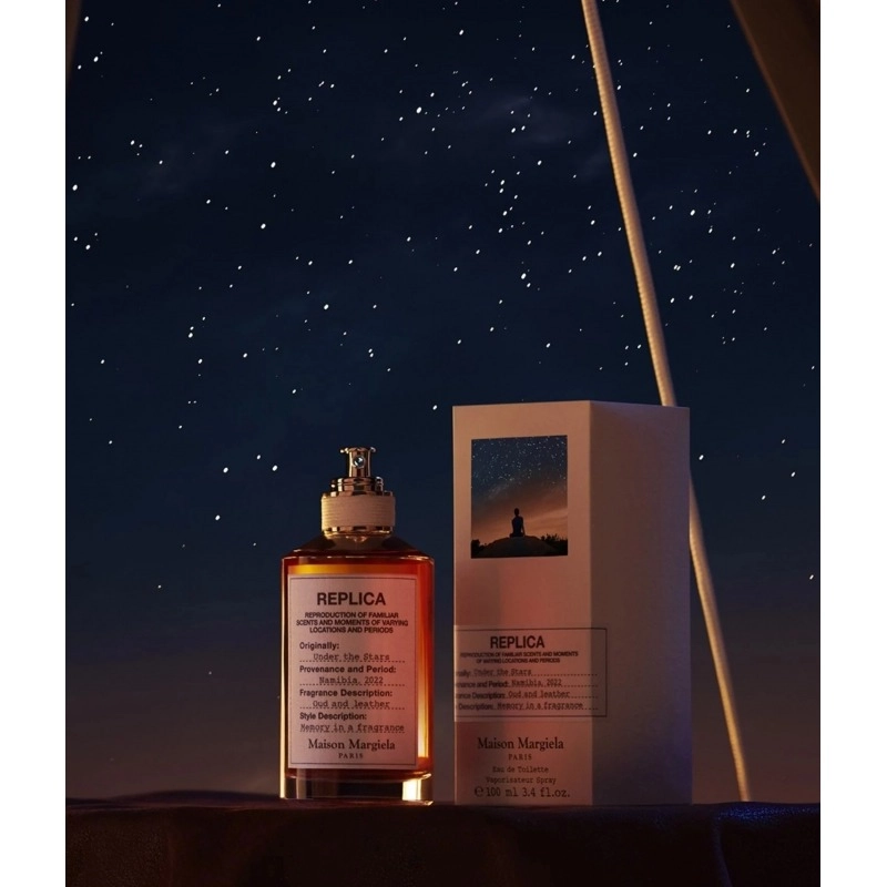 Новый аромат Maison Margiela Under the Stars, запущенный в 2023 году, создан для тех, кто стремится к победе, как для мужчин, так и для женщин. Эта удивительная композиция переносит нас в Африку и служит восхвалением нетронутой природы, спокойствия и звёздного неба Намибии, которое при ясной погоде выглядит как мерцающая завеса, украшенная звездами.