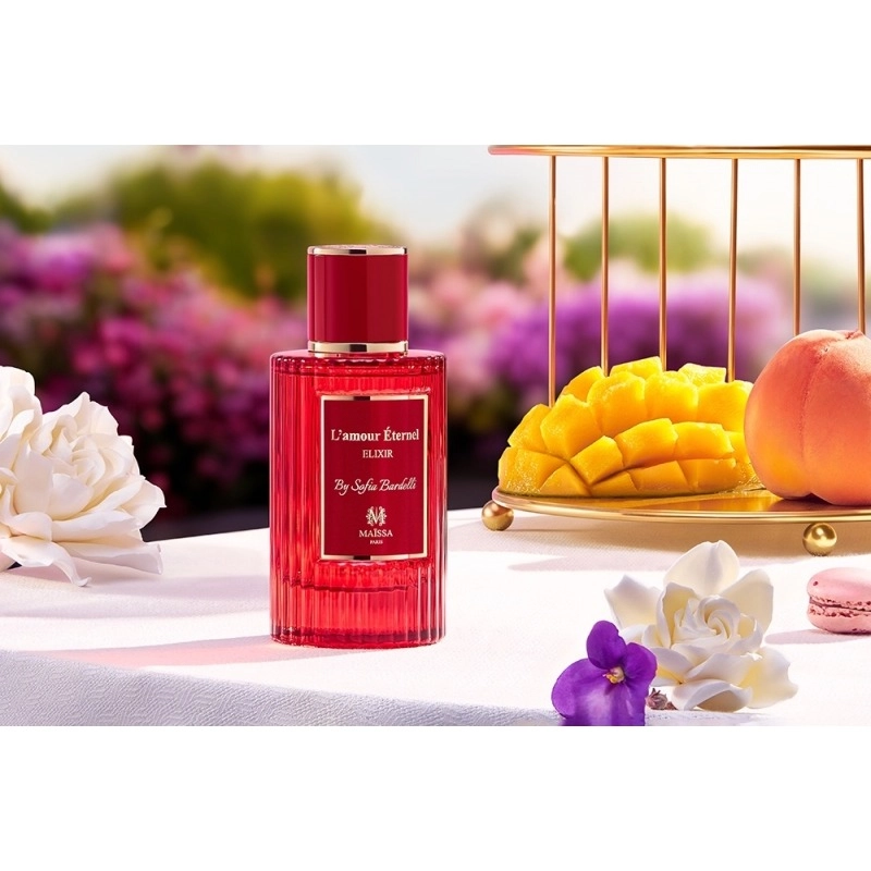 Эликсир Maissa L'amour Eternel, наполненный экзотическими цветами и фруктами, является настоящим любовным посланием к Парижу. Он создает атмосферу, в которой царит дух "Города любви", наполненного смехом, зажигательной музыкой и беззаботной атмосферой. Этот аромат сочетает в себе чувственную страсть и крепкие семейные связи, призывая вспомнить о любви с первой встречи.