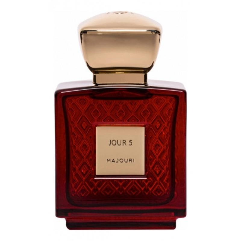 Парфюмер Cyrill Roland создал образ идеальной красной розы, олицетворяющей элегантность и независимость. Ноты хвойного кедра и древесной молекулы amberwood подчеркивают его благородный характер. Живописная композиция Jour 5 от Majouri представляет собой удивительную розу, с которой приятно встретиться снова и снова. Этот аромат был запущен французским брендом в 2019 году.