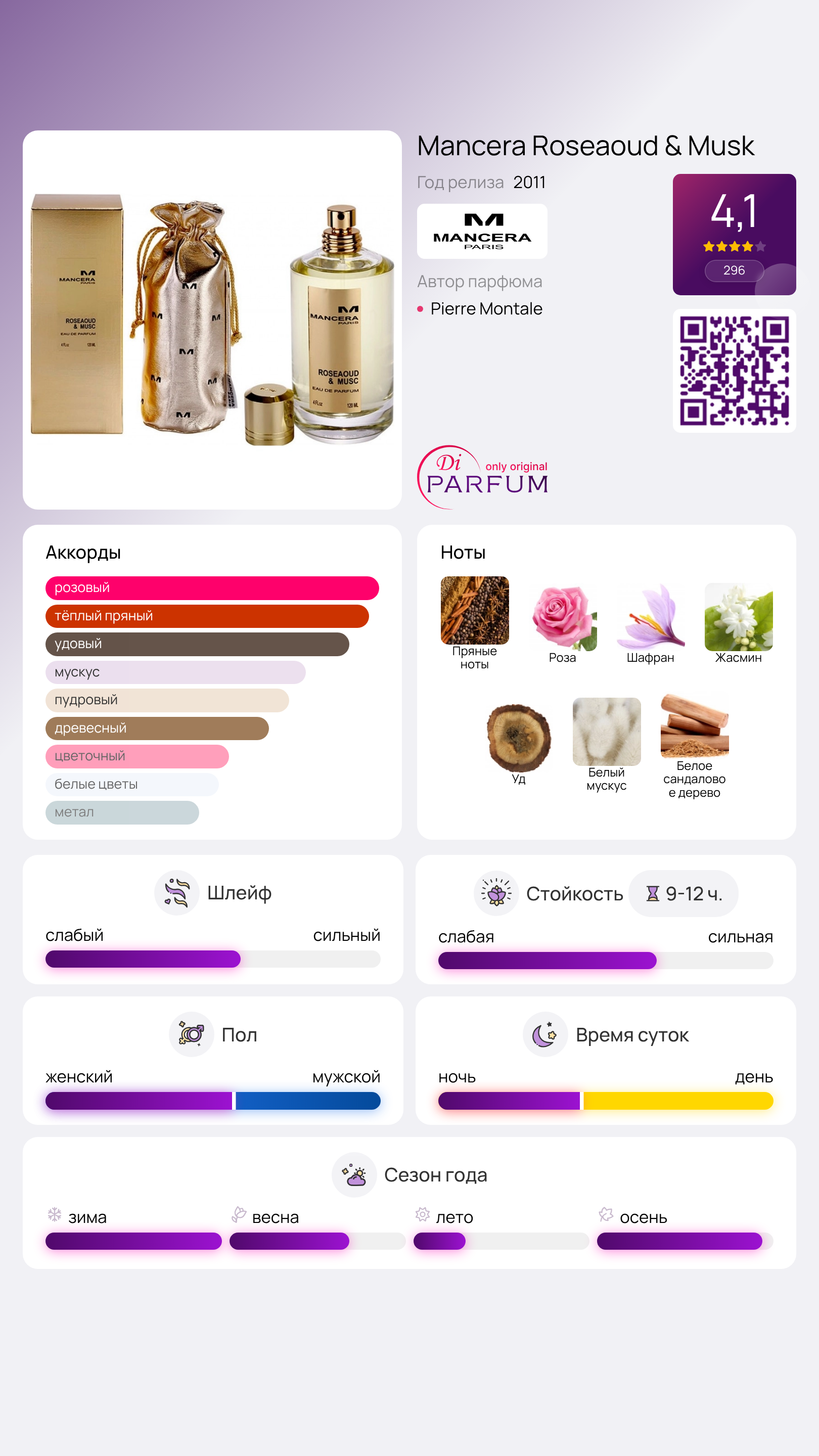 Mancera Roseaoud & Musk создан для тех, кто ценит яркость и насыщенность мускусных древесных ароматов с оттенками цветов.