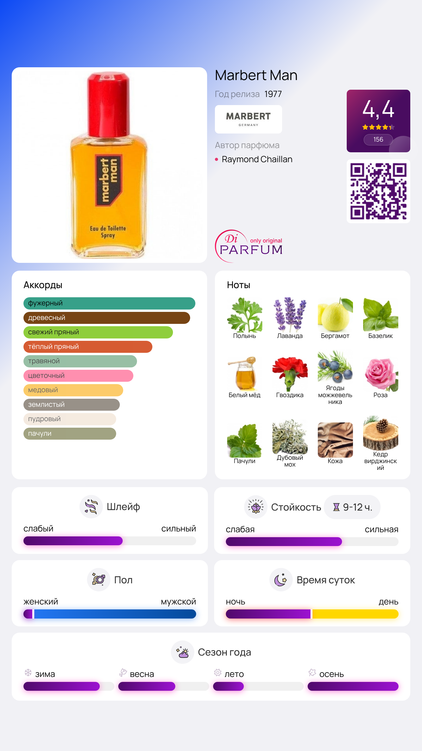 Marbert Man от Marbert — это ароматическая фужерная парфюмерная композиция для мужчин, выпущенная в 1977 году. За создание аромата отвечает известный парфюмер Реймонд Шайян. Marbert Man идеально подходит для уверенных в себе мужчин, которые ценят классику и элегантность в своих fragrance.