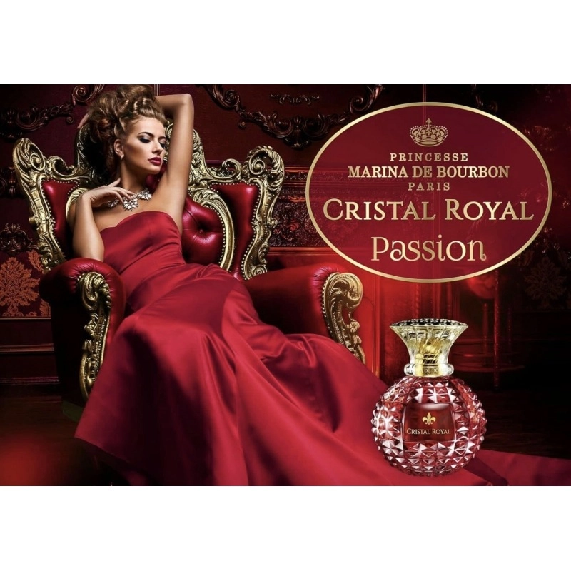 Шоколадные оттенки пралине придают дополнительное чувство праздника, а игривая сладость поддерживается мягкой ванилью на сливочном сандале. Очаровывающий аромат Cristal Royal Passion Princesse был представлен французским брендом Marina de Bourbon в 2017 году на выставке в Каннах. Он обращается к свободным и уверенным в себе женщинам, верящим в свои возможности.