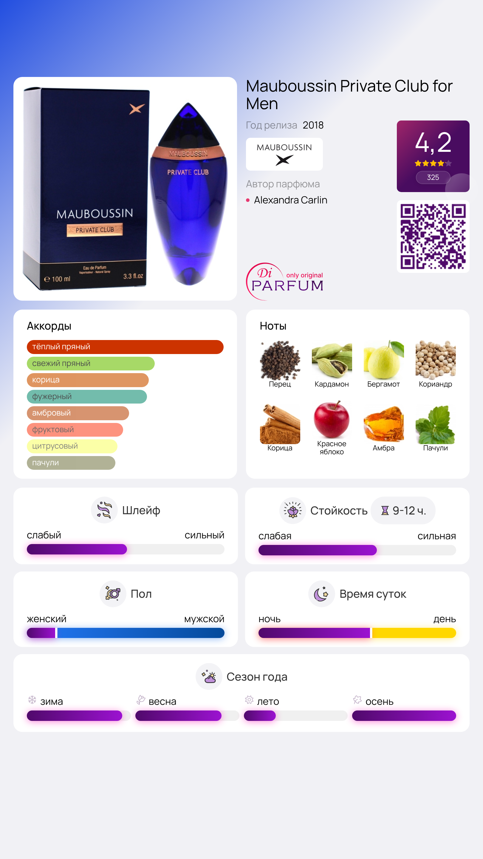 Private Club for Men от Mauboussin – это магнетический и привлекательный аромат для тех, кто ценит настоящую парфюмерную элегантность и роскошь.