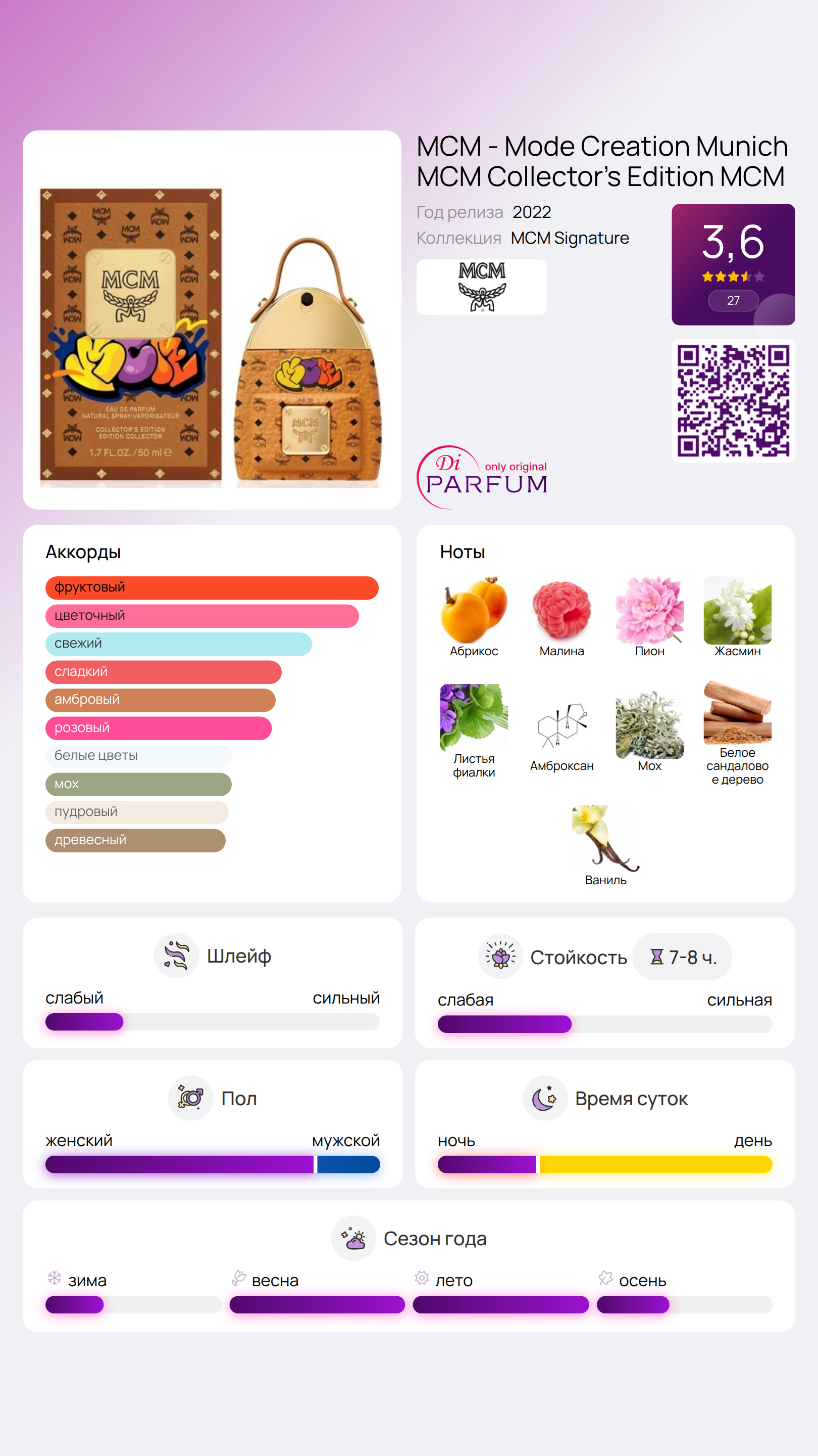 Mode Creation Munich MCM Collector's Edition – это прекрасный цветочно-восточный аромат, выполненный в стиле люкс из кожи, который был создан для запуска кампании Travel Beyond. Он отражает основное кредо бренда, заключающееся в том, чтобы не ограничиваться географическими границами, правилами или полом. MCM продолжает многолетние традиции туристической культуры.