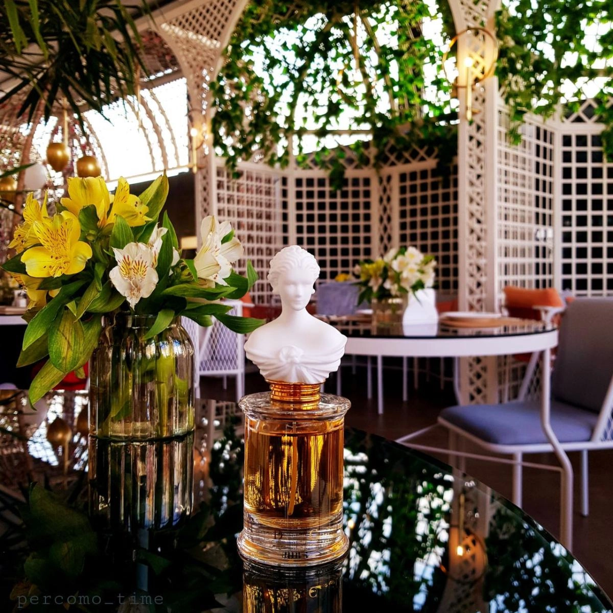 Сначала мы встречаем цитрусовые акценты, такие как апельсин, грейпфрут и танжерин, а также пряности - перец и кардамон, в сочетании с ландышем, магнолией и свежими зелеными нотами. В сердце аромата преобладают цветочные и древесные ноты: дубовый мох, кедр, жасмин, иланг-иланг, тубероза, роза и гелиотроп, которые дополняются мягкой амброй и флердоранжем.