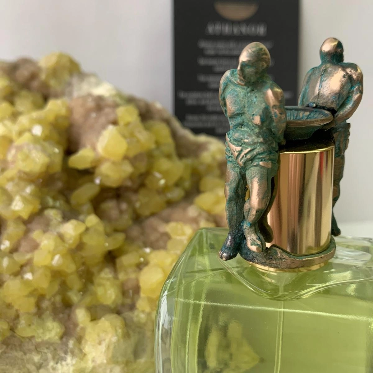 Композиция Athanor от Mendittorosa посвящена выдающимся личностям, которые постоянно укрепляют свои позиции в жизни. Дизайн крышки был разработан ювелиром Борелли Кармином, который создал скрупулезную миниатюру, изображающую двух сосредоточенных людей, погруженных в свою работу. Их усилия представляют собой древнее ремесло, запечатленное в бронзе и символизирующее внутренние изменения человека. На дне расположен золотой самородок, являющийся символом чистоты и света.