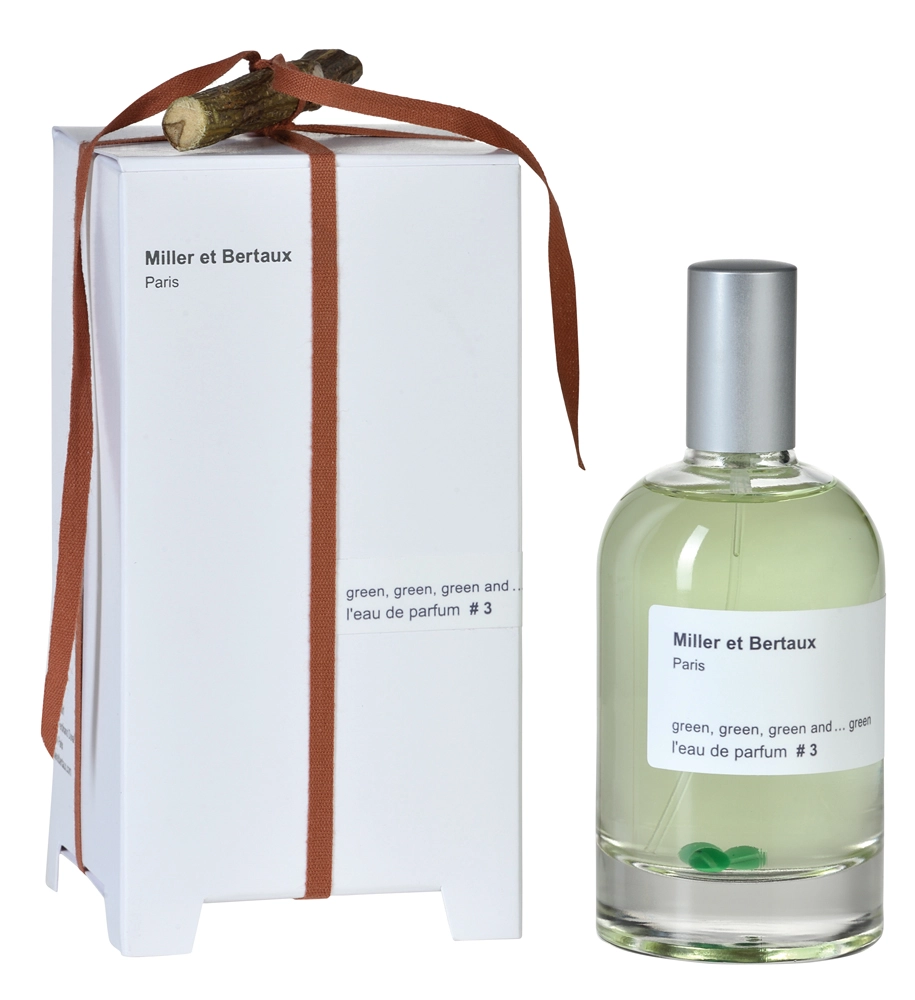 Miller et Bertaux #3 Green, Green, Green and... Green – это унисексовый аромат насыщенного зеленого оттенка, созданный известным французским модным домом «Миллер и Берто». Дизайнеры Фрэнсис Миллер и Патрик Берто, в честь которых был назван бренд, превратили процесс создания парфюмов в увлекательное исследование, стремясь к открытию уникальных ароматов. Флаконы, в которых представлены их ароматы, имеют лабораторный стиль и напоминают аптечные бутылочки.