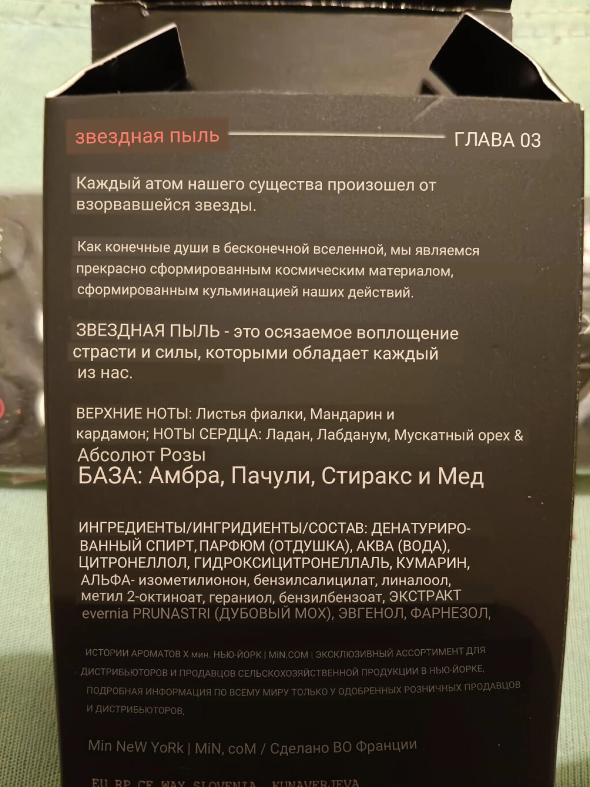 Формула Stardust от MiN New York непередаваемо необычна – это ароматическое выражение нашей сути как идеального космического материала. Мы сами формируем себя через действия и существуем, как души в безбрежной Вселенной. Этот аромат создан для мужчин и женщин, усталых от обыденной парфюмерии с простыми цветочными нотами. Глубокий черный цвет флакона напоминает ночное небо, подчеркивая его уникальность и загадочность.