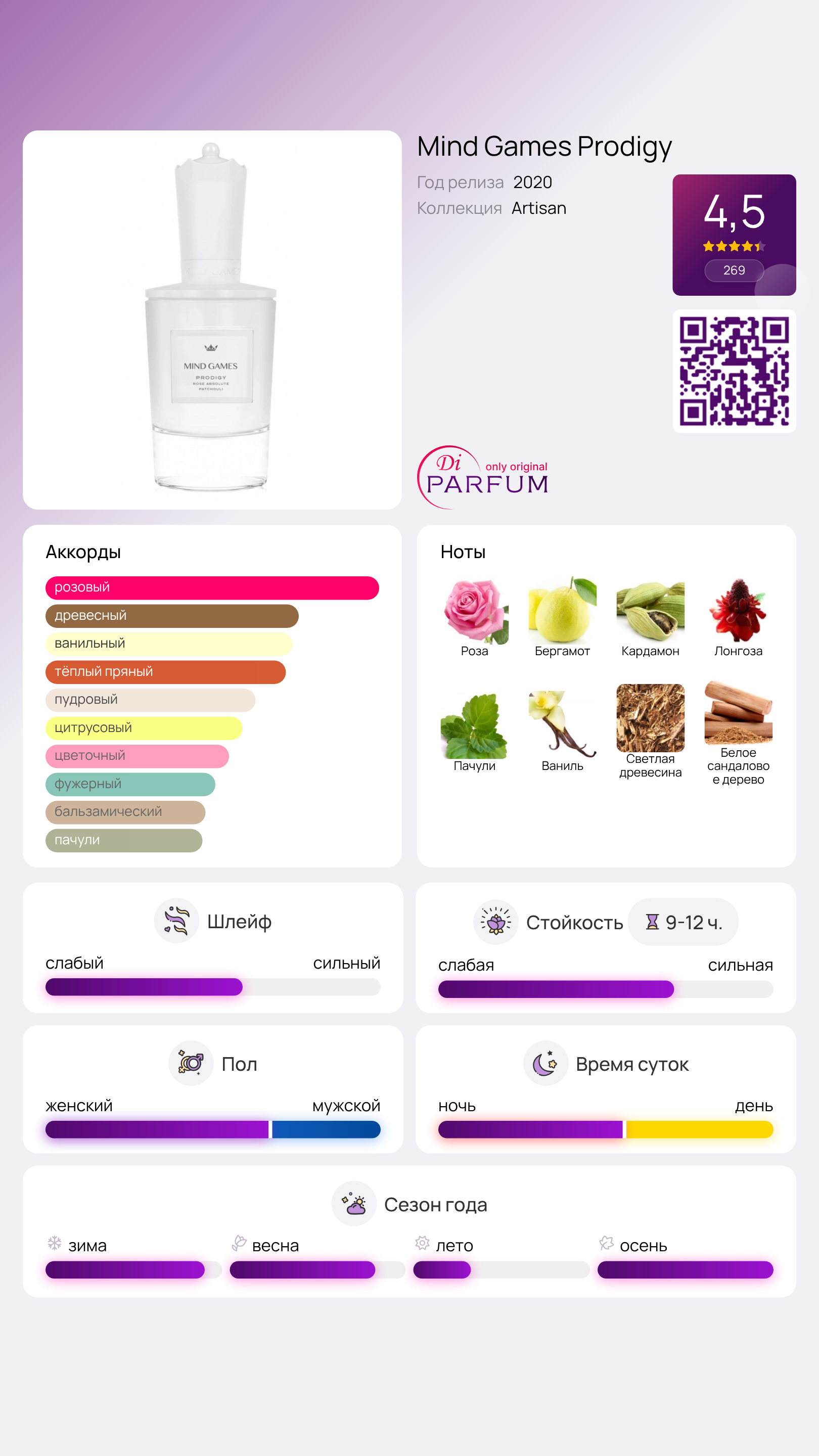 Prodigy от Mind Games — это универсальный аромат, предназначенный как для женщин, так и для мужчин. Выпущенный в 2020 году, он сразу же привлек внимание благодаря своим ярким и оригинальным нотам.