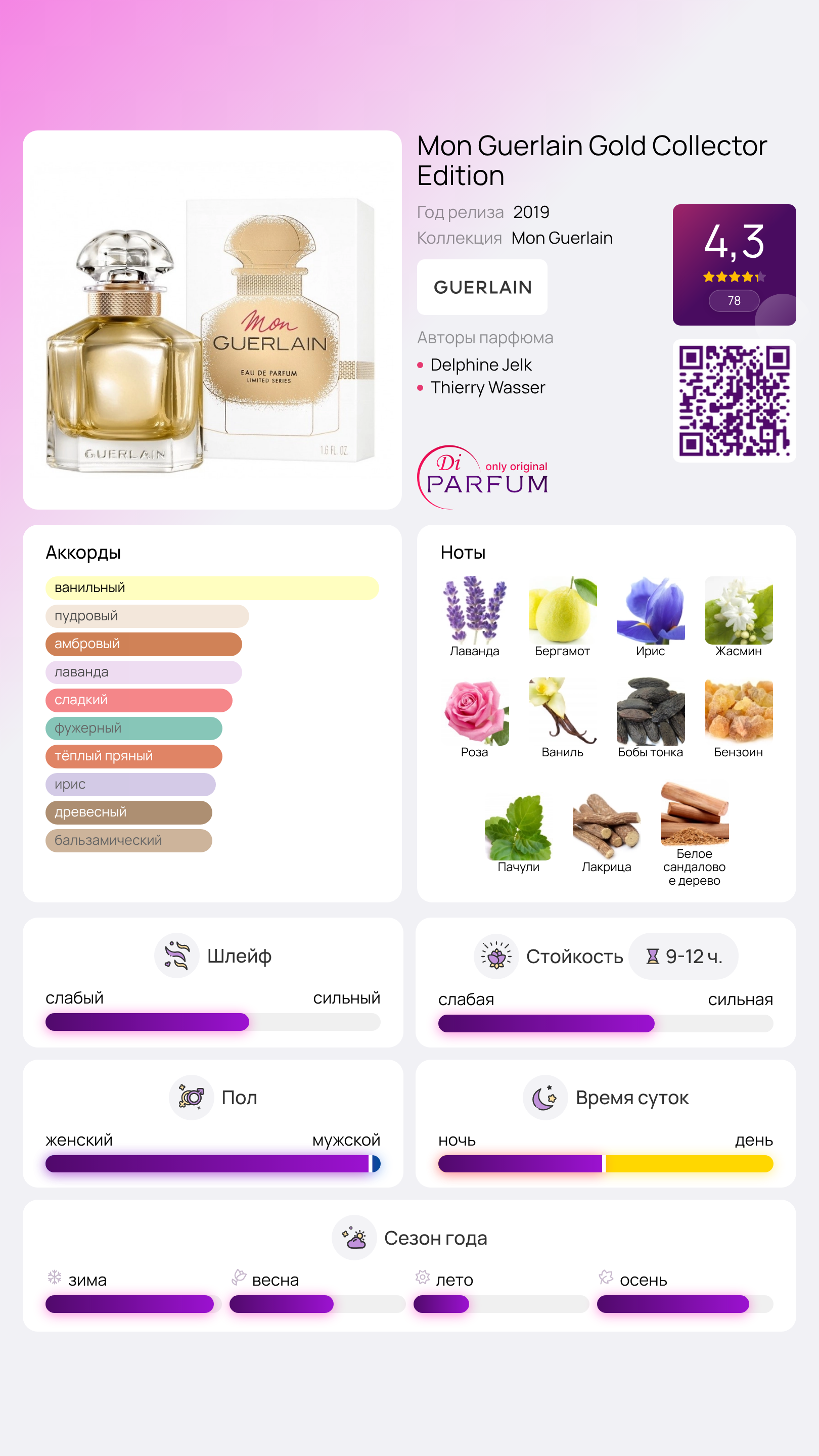 В завершении, в базовых нотах парфюма основу состав