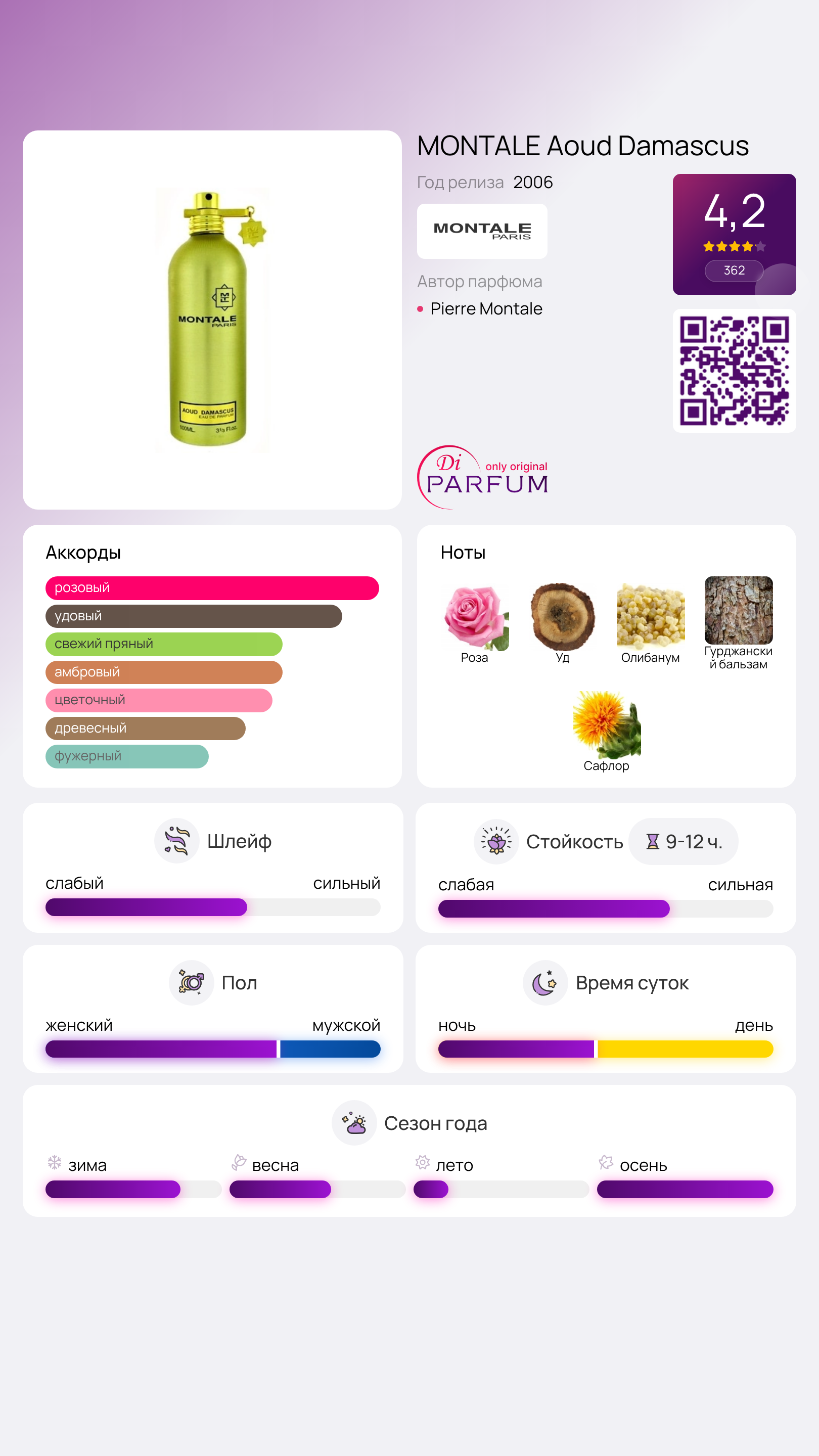 Aoud Damascus от Montale – это восточно-цветочный аромат для женщин, который был представлен в 2006 году. Создателем этого шедевра является известный парфюмер Пьер Монталь.