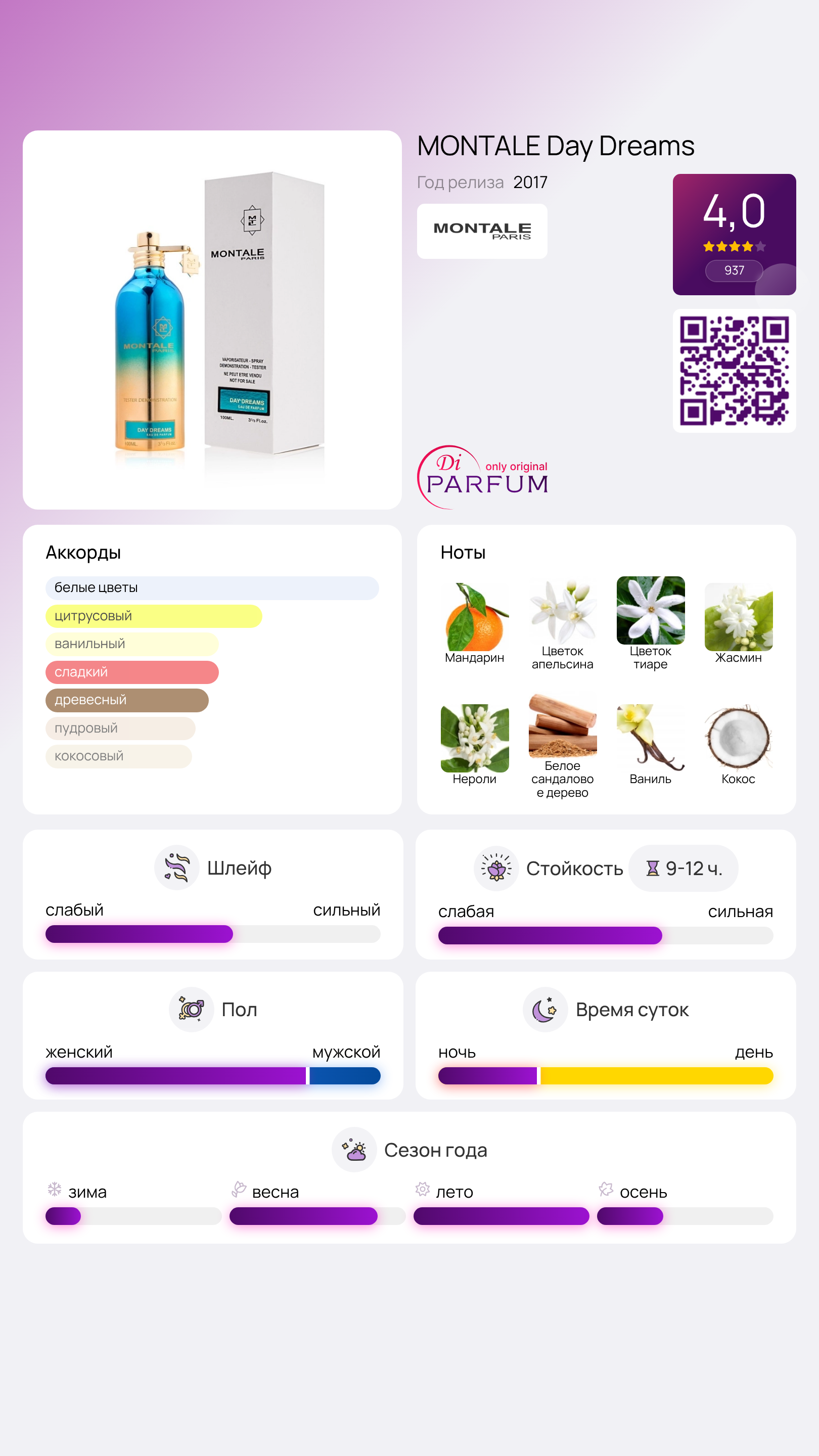 Одной из самых ожидаемых новинок в мире парфюмерии 2017 года стал унисекс аромат Day Dreams от Montale. Как преданные фанаты бренда, так и новички в этом искусстве смогли насладиться сладким цветочно-фруктовым звучанием, которое не вызывает ощущения чрезмерной сладости: плоды выглядят свежими и сочными, а цветочные ноты проявляются нежно и ненавязчиво – именно так должен звучать настоящий летний аромат.