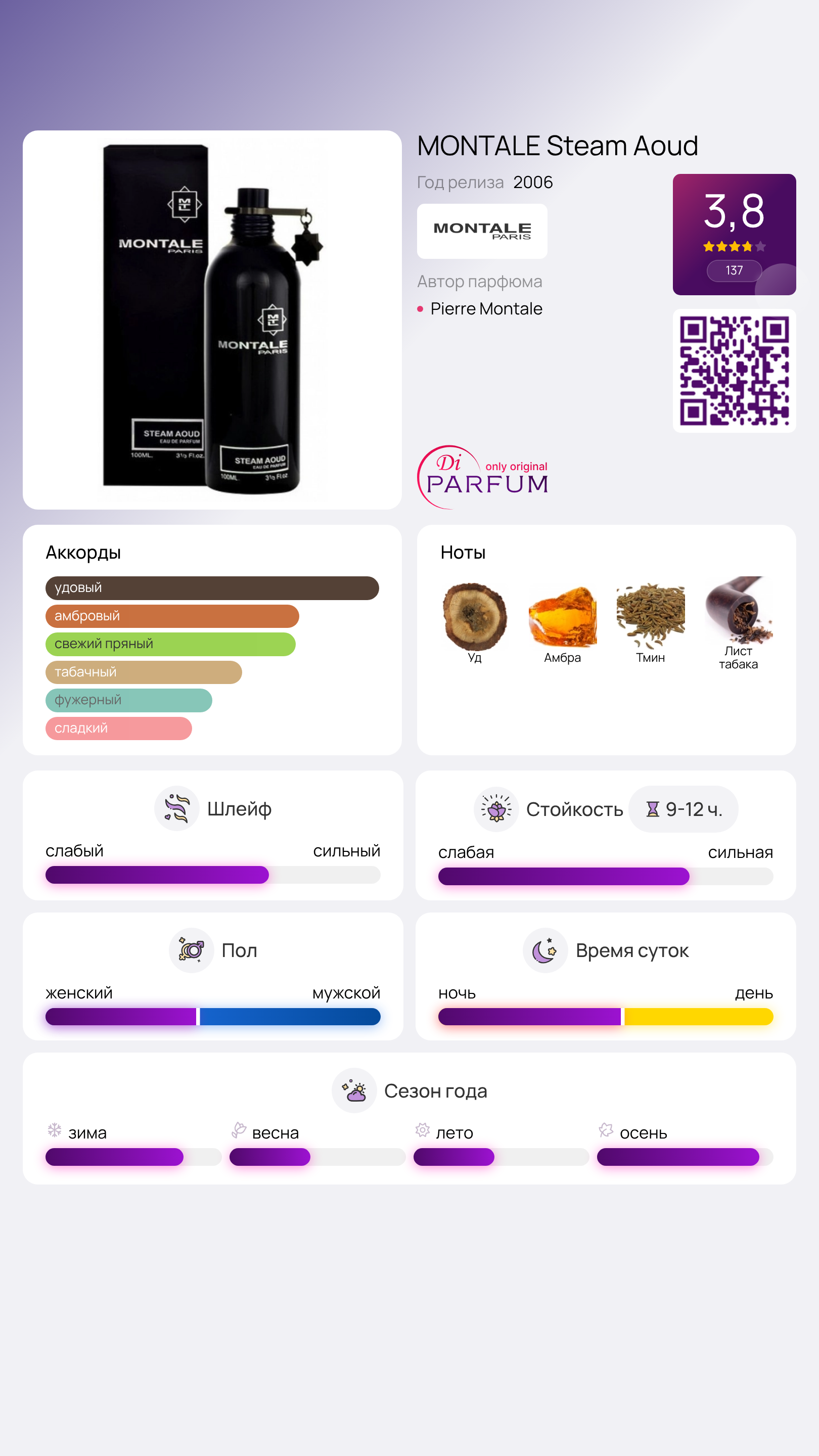 Парфюм Steam Aoud от легендарного бренда Montale, известного своими уникальными ароматами, предлагает древесно-восточное звучание, которое станет настоящим соблазном для истинных ценителей. Этот аромат, словно невидимая нить, связывает нас с вечными принципами, такими как благородство, красота и страсть.