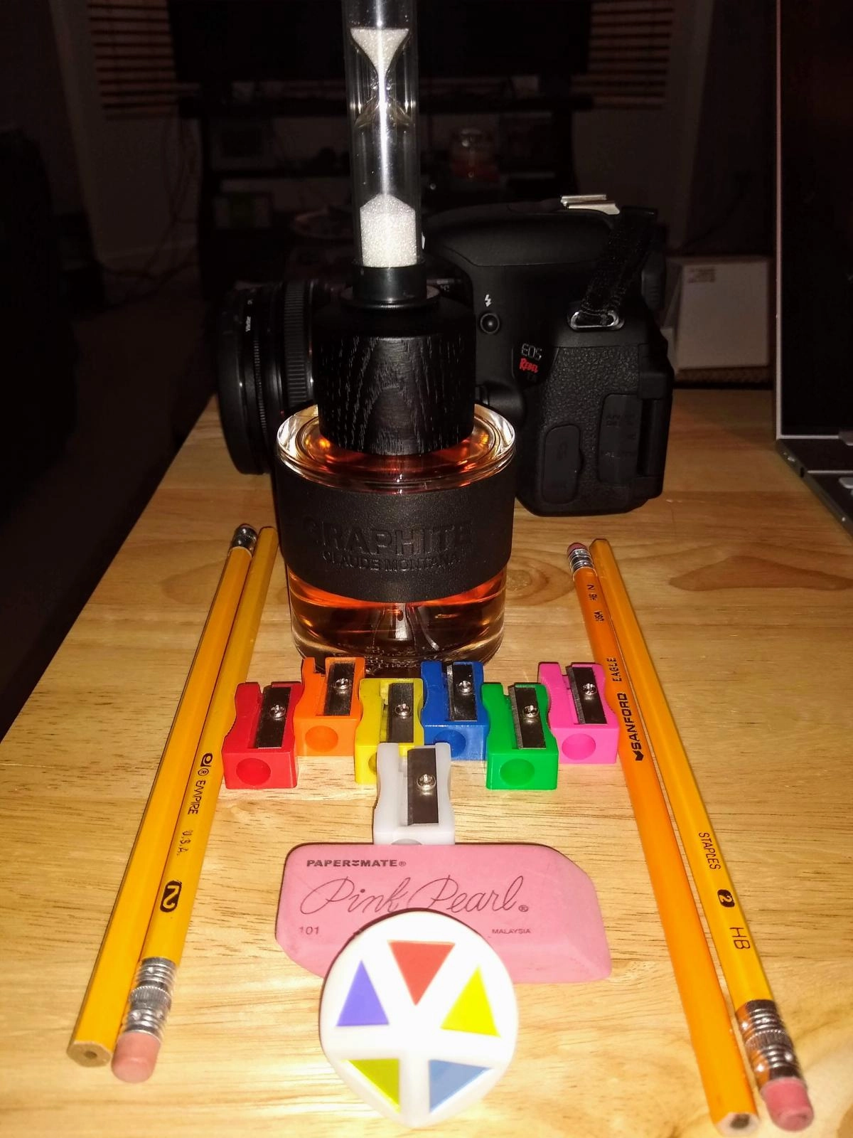Цвет графита накладывается на стильную черно-белую основу. Ароматические ноты кедра и черного перца формируют древесные и зеленые полутона. Грубые грань смягчаются животной нотой фиалки, а яркость цитрусового бергамота добавляет свежести сухим зелёным акцентам.