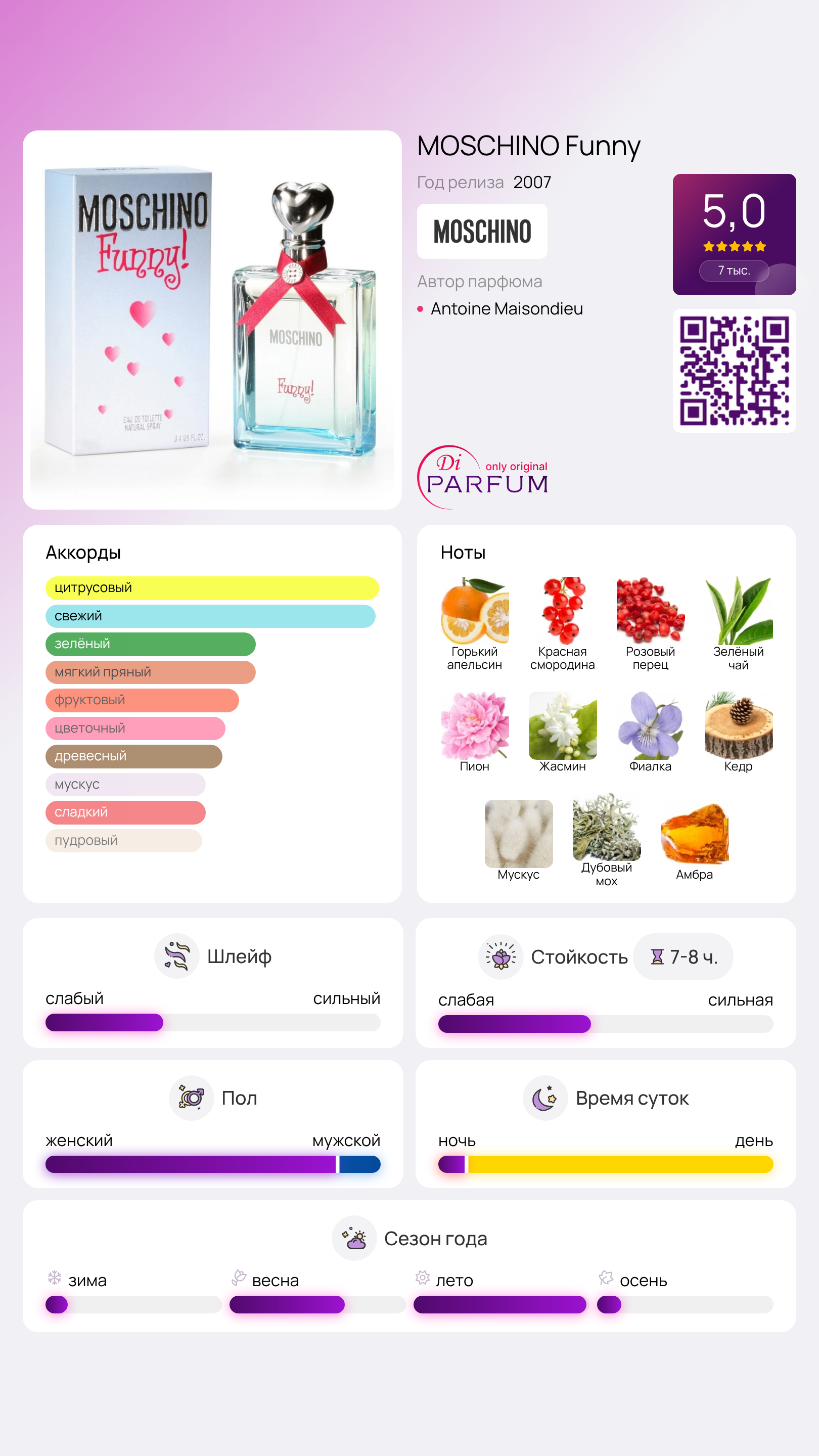 Парфюм Funny от Moschino олицетворяет молодость и жизнерадостность. Он предназначен для девушек, которые способны искренне наслаждаться жизнью и находить радость в каждом моменте. Эти женщины романтичны, привлекают внимание, нежны и чувственны, а также полны юмора. Они легко становятся центром внимания в любой компании, лишь появившись.