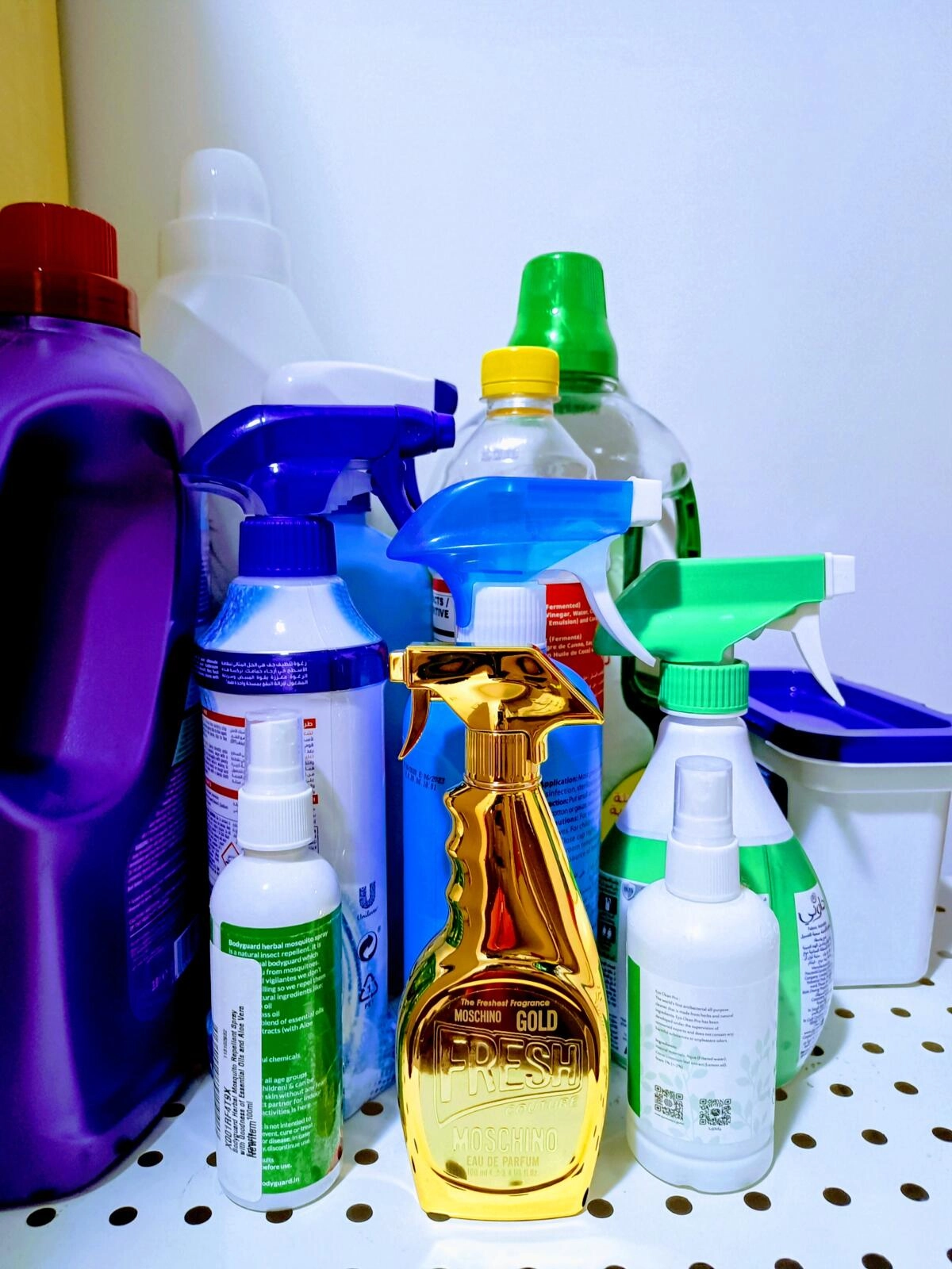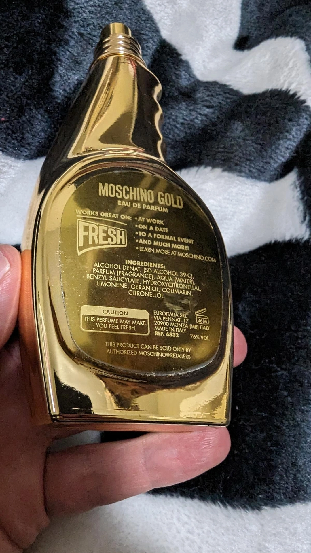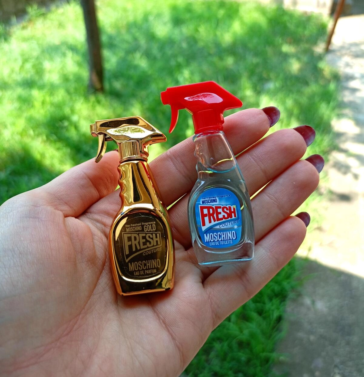 Бренд Moschino славится своим оригинальным подходом к дизайну флаконов. Как вам идея украсить туалетный столик… бутылкой с чистящим средством? В уникальной «бытовой» упаковке золотого цвета представлен аромат Gold Fresh Couture. Компания представляет этот продукт как элегантный, современный и подходящий для молодежи.