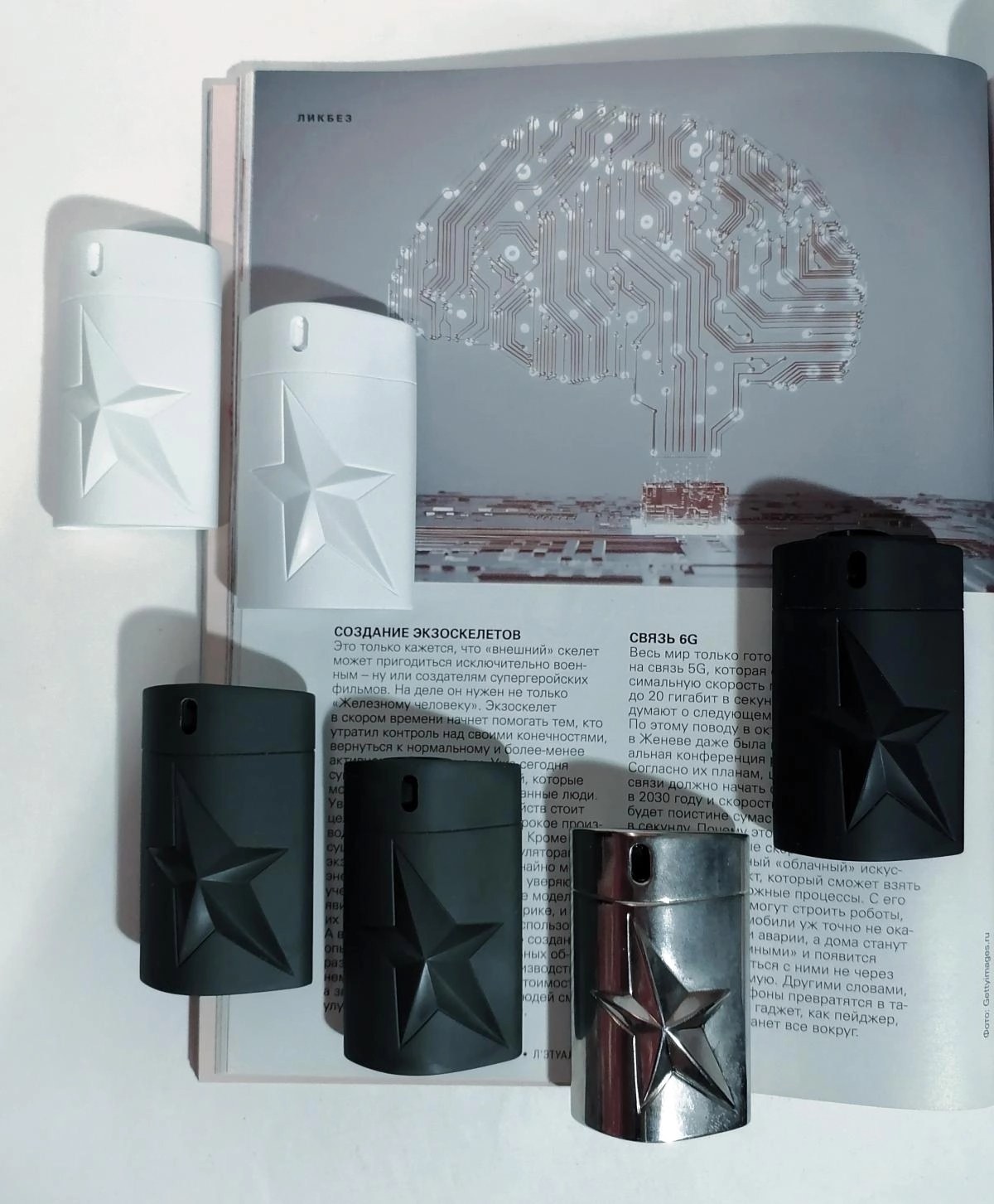 Флакон, оформленный в элегантном стиле и увенчанный звездой, не содержит привычных цитрусовых нот, что делает его еще более примечательным. Основные аккорды A Men Pure Shot построены на можжевельнике, в сочетании с мятой в верхних нотах, кардамоном и перцем в сердце, а также пачули и секвойей в базе, создавая неповторимый ароматический профиль.