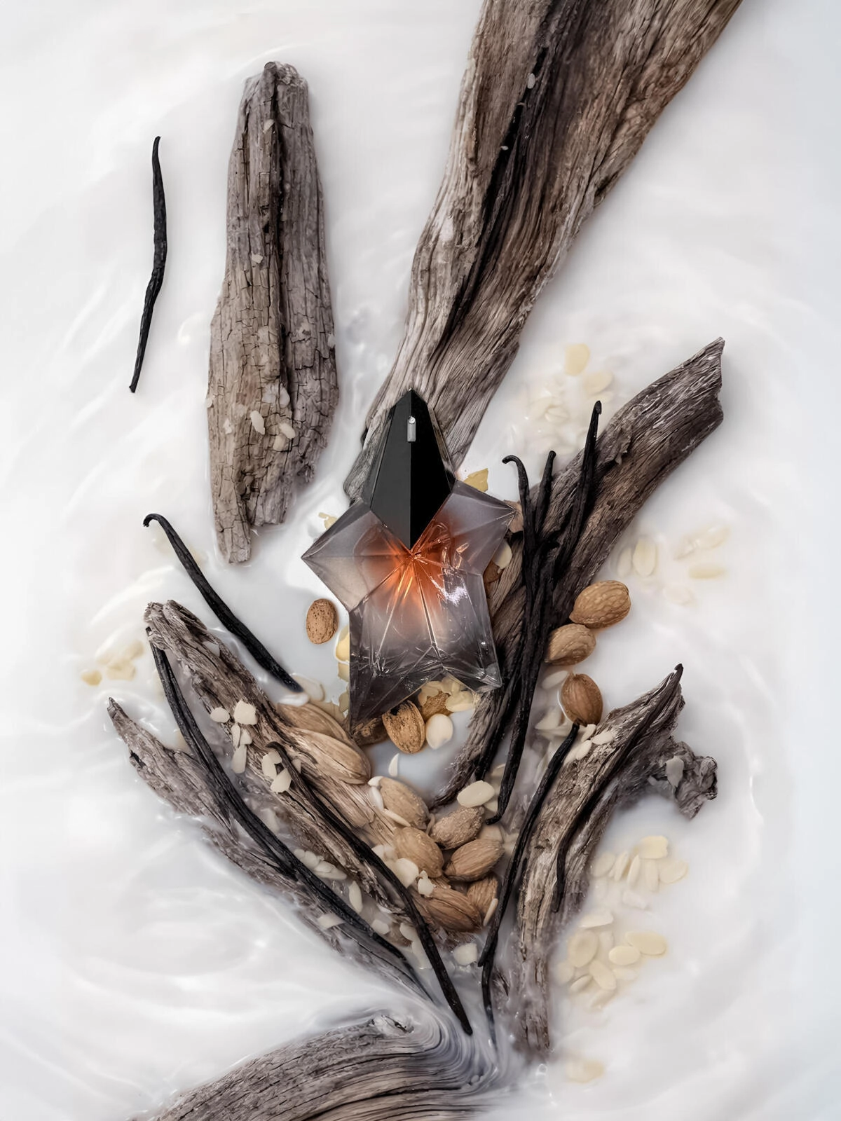 Aромат открывается ярким аккордом миндального молока, создавая плавное и бархатистое впечатление. Сердце композиции раскрывается кремовым мускусом, который создает эффект "второй кожи", а база из сандалового дерева добавляет теплоту и шелковистую древесную глубину.