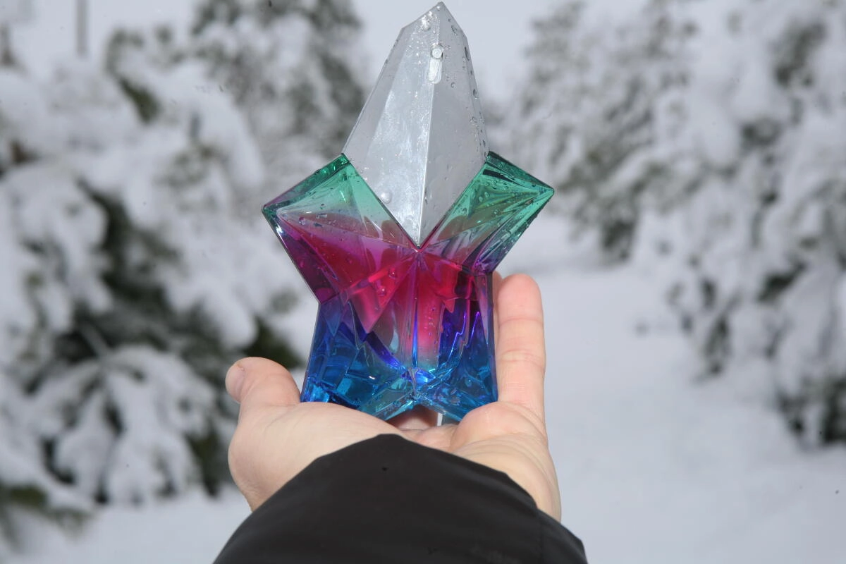 Женственный аромат Angel Iced Star от MUGLER был выпущен в 2021 году ограниченным тиражом. Исследуйте новый мир ароматов, созданный Мюллером, основателем французского бренда. Знаменитый флакон в виде звезды исполняет танец синих, зеленых и красных оттенков, напоминая о свете льда на вершинах айсбергов, а внутри него бушует теплая сила огня.