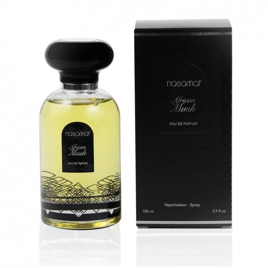 Непередаваемая композиция African Musk от Nasamat является идеальным выбором для уникальных мужчин и женщин, ценящих восточные ароматы и стремящихся к уверенности в себе. Элегантный флакон с солнечной жидкостью, декорированный черным узором, стал частью стартовой коллекции, выпущенной в 2014 году в известном магазине Paris Gallery на Ближнем Востоке.