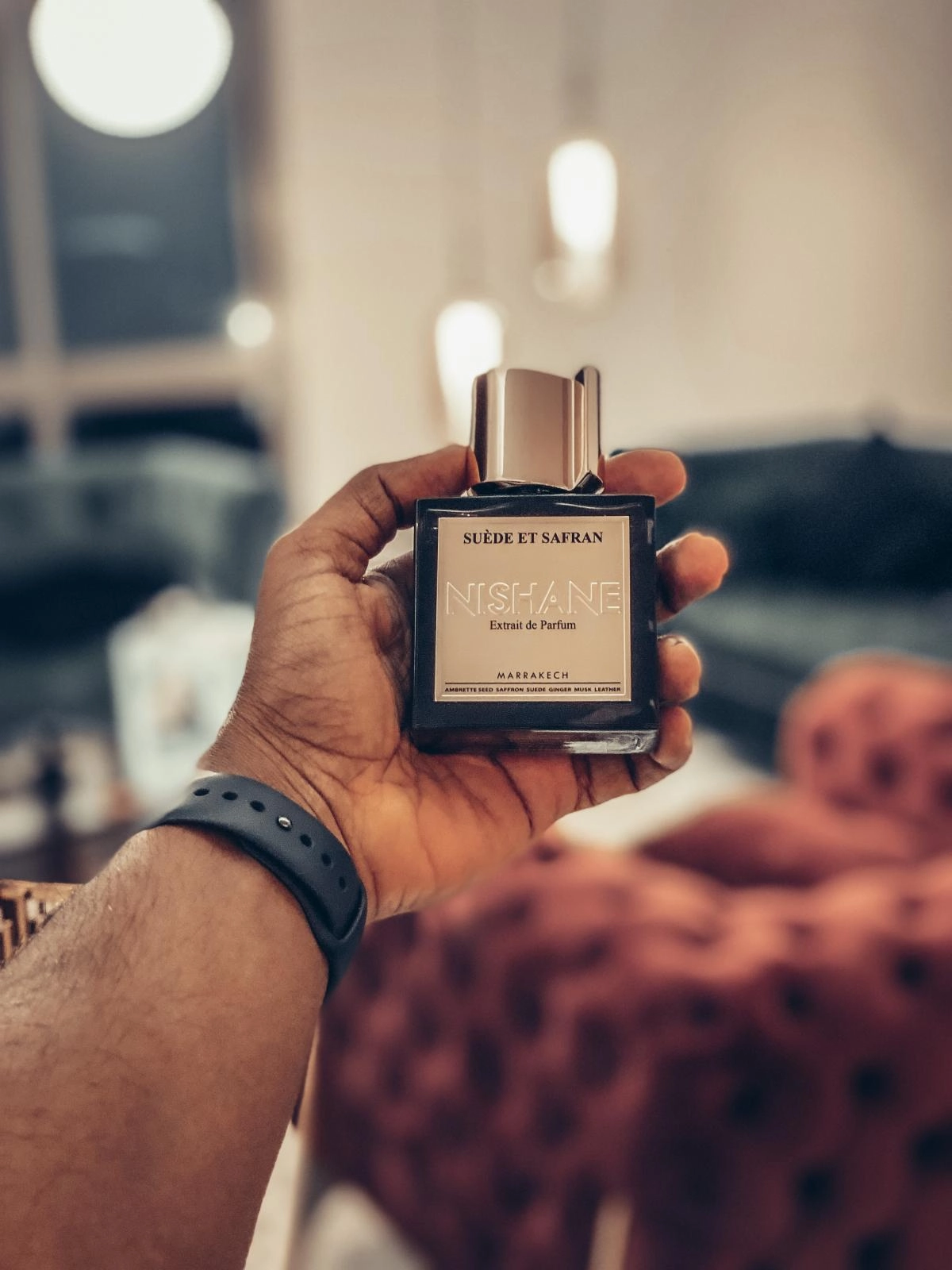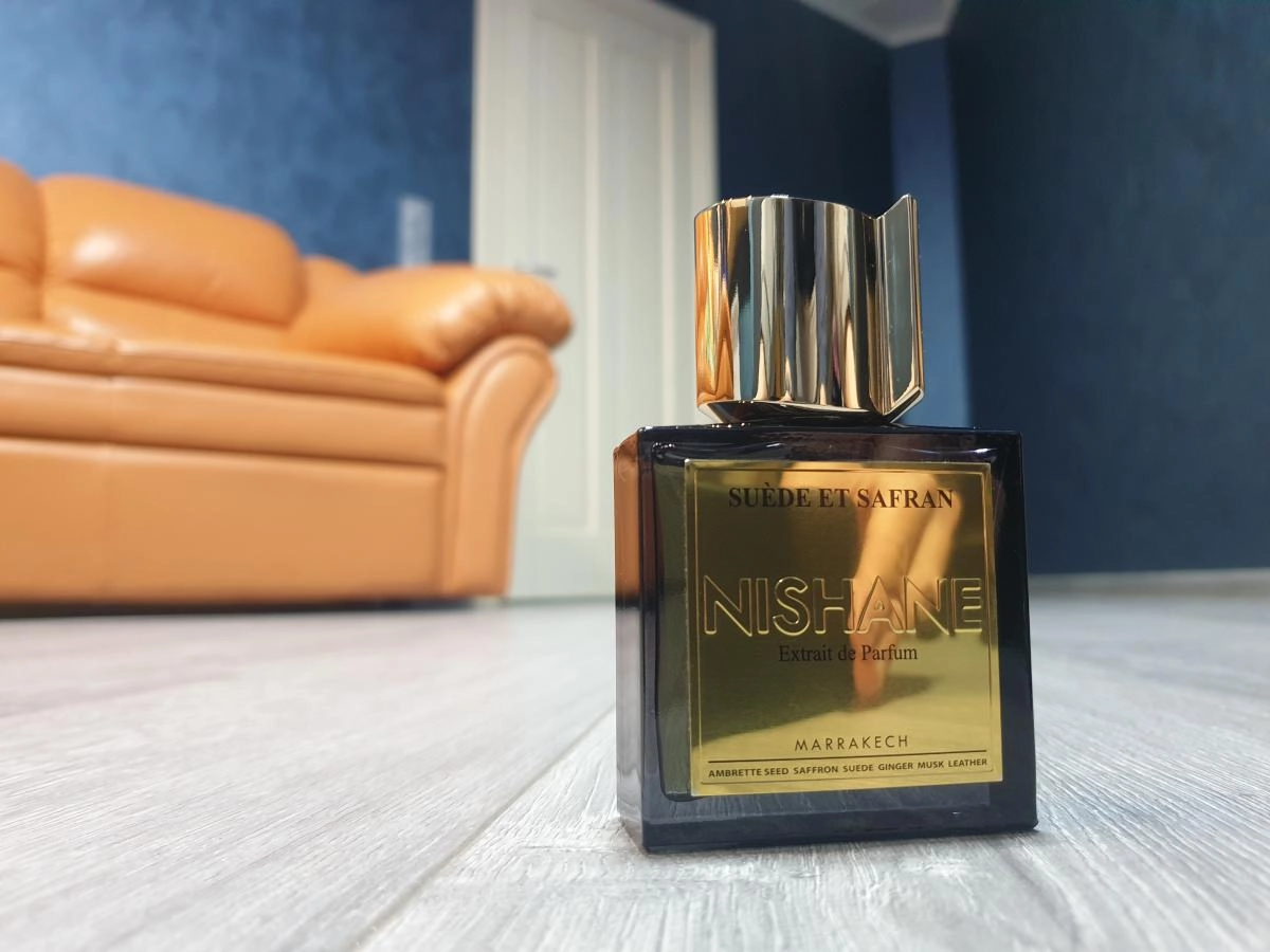 Аромат Suede et Safran стал настоящим открытием для тех, кто ценит кожаные ноты. Основой этой композиции служит мягкая замша, которая нежно ощущается в центре аромата, но прежде ей предшествует раскрытие шафрана. Этот компонент занимает свою позицию в начальном аккорде вместе с амбреттой. Кроме того, жаркий имбирь создает контраст с мягкостью кожи, что задумал автор аромата Хорхе Ли. Завершает композицию дуэт мускуса и тмина.