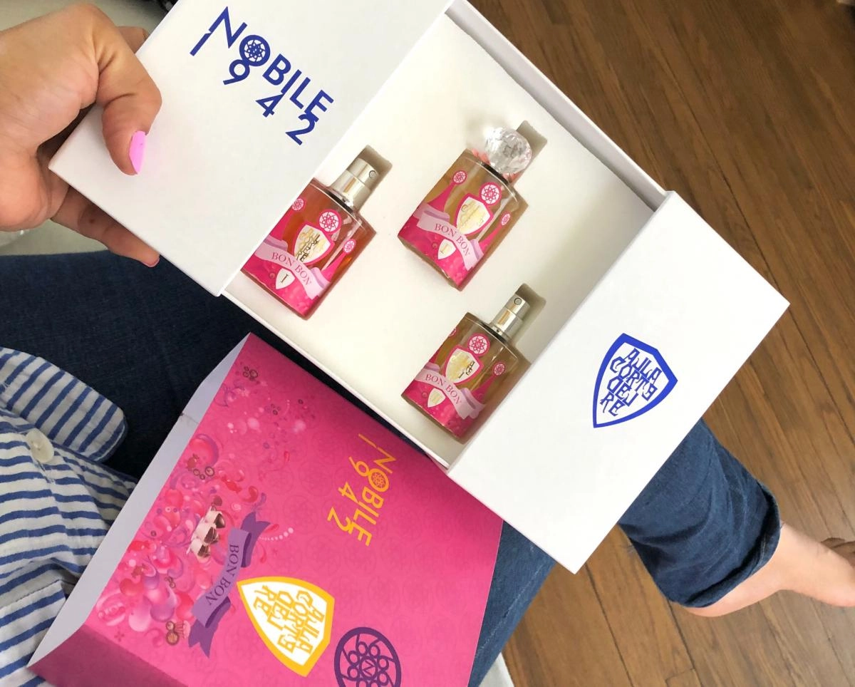 Аромат Bon Bon от Nobile 1942 завораживает своей сказочной атмосферой и станет замечательным презентом для любителей сладкого. Выпущенная в 2015 году, эта коллекция ярко выделяется среди предложений итальянского бренда. Упаковка, разработанная дизайнерами, носит название Coffret Ragazze.