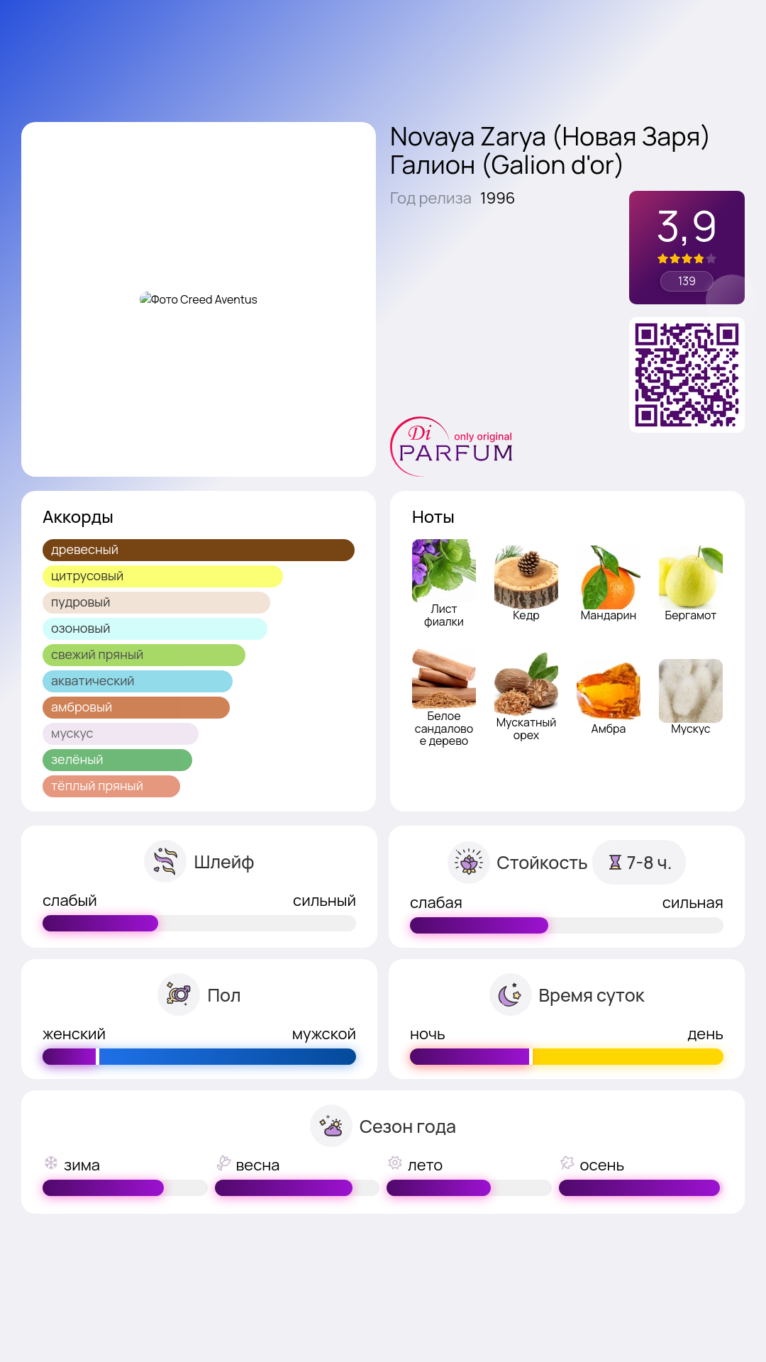 Galion d'Or принадлежит к семействам сладких и пряных ароматов, что делает его особенно привлекательным для увлеченных и энергичных личностей. Радующие цитрусовые ноты гармонично сочетаются с теплыми пряностями, что создает удивительный контраст. Этот парфюм станет отличным выбором для вечера и особых случаев.