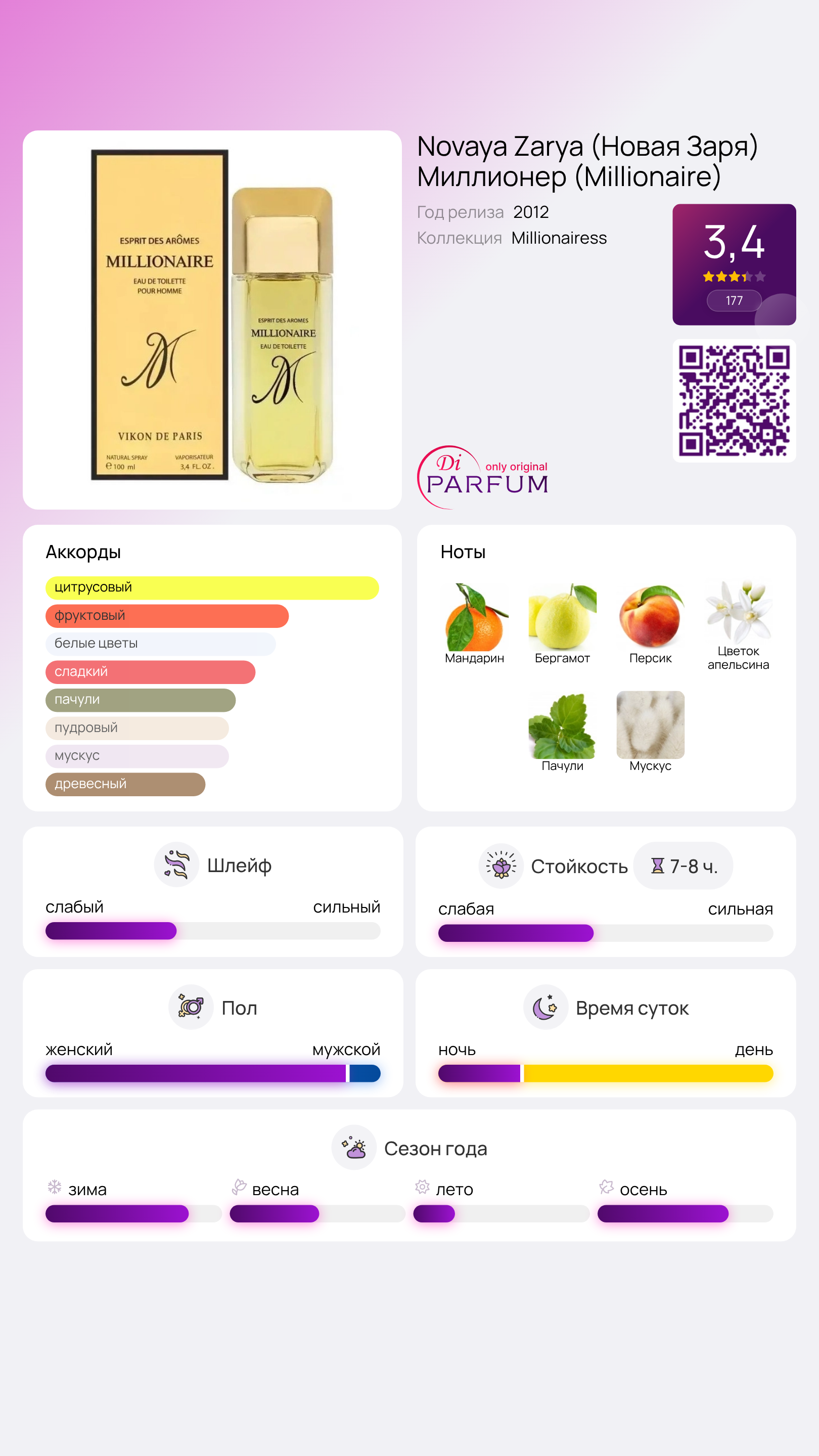 Выбор Millionairess станет отличным дополнением к вашему образу, идеально подходя как для повседневного использования, так и для особых случаев. Создайте свой уникальный стиль с этим изысканным ароматом!