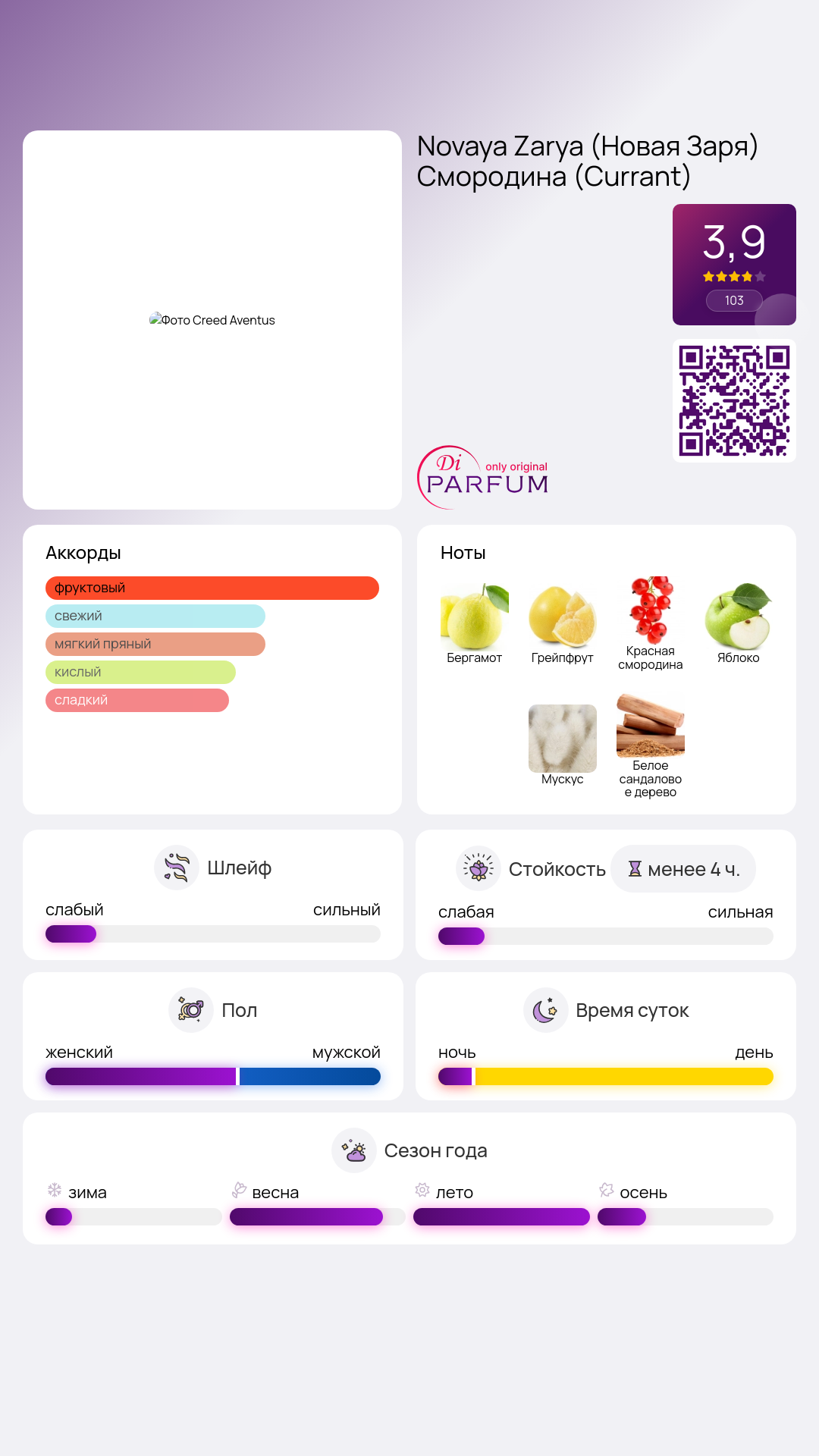 Подходящий для повседневного использования, этот парфюм подчеркнёт вашу харизму в любое время суток. Смородина придаст вам уверенности и станет неизменным спутником в любых ситуациях.