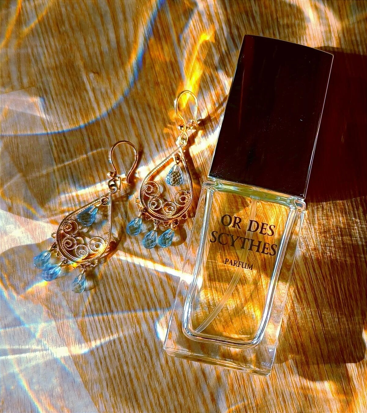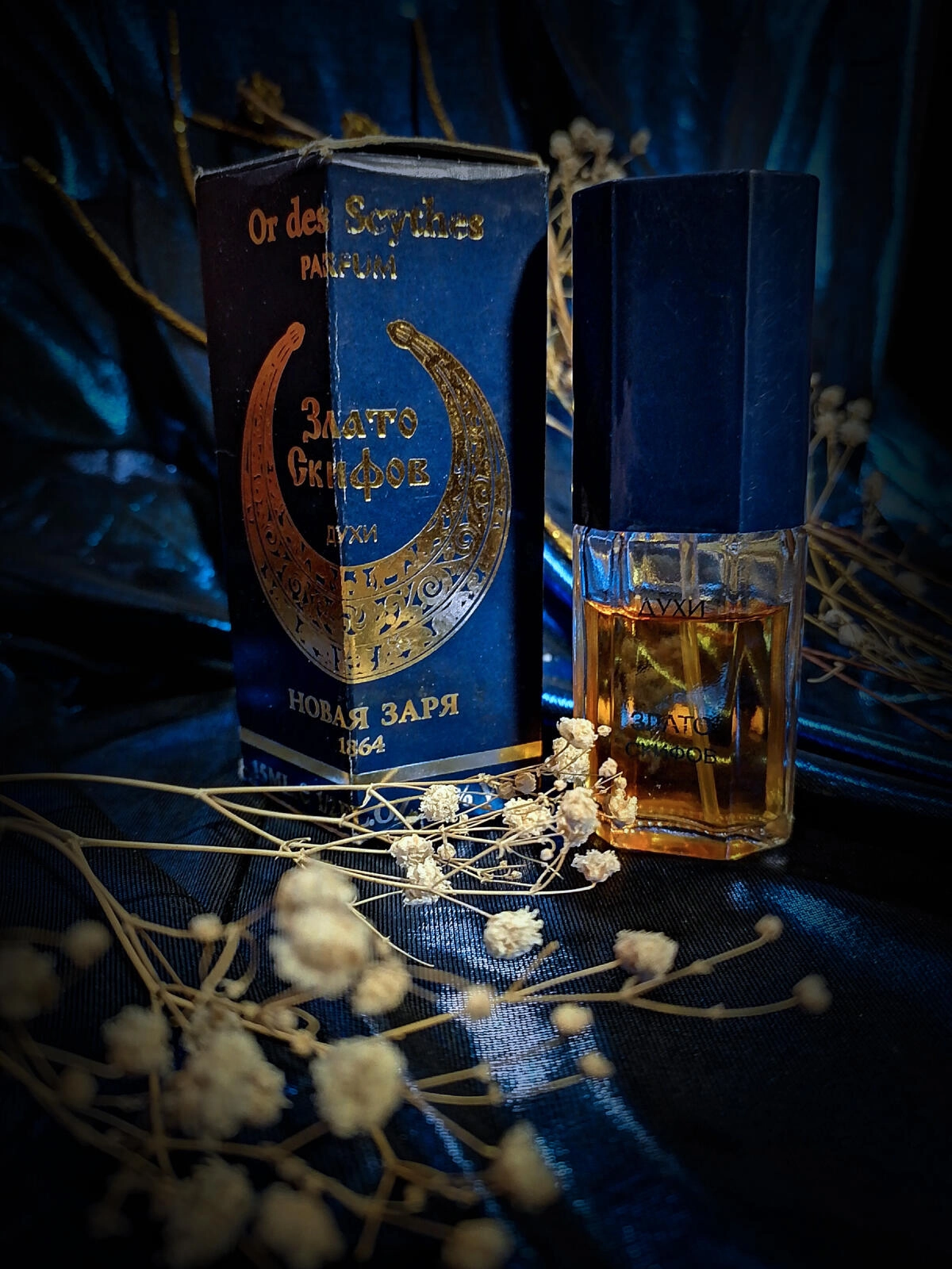 Стойкий ароматы Злато Скифов (Or Des Scythes) от Novaya Zarya раскрывают многогранность успешной и деловой женщины. Дизайн флакона и золото оттенка соответствуют названию, а на синей упаковке изображен золотой оттиск аспекта древнего украшения.