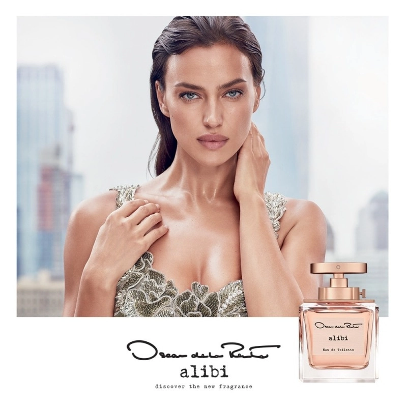 Эликсир Oscar de la Renta Alibi Eau de Toilette, вдохновленный цветочно-фруктовыми нотами, олицетворяет естественное обаяние изысканной женщины марки Oscar. Этот аромат дарит атмосферу романтики, соединяя элегантность с каплей игривой загадки. Лицом рекламной кампании стала Ирина Шейк, которая символизирует баланс легкости и силы, столь необходимых в повседневной жизни.