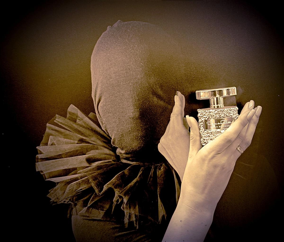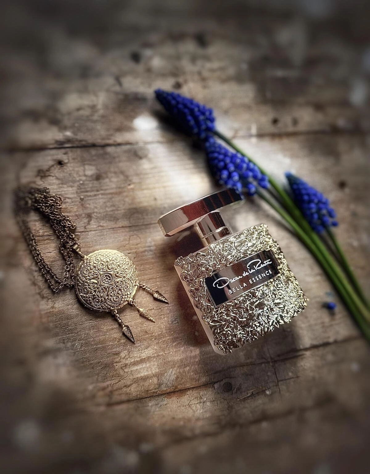 Флакон Bella Essence украшается рельефной белой лепниной, напоминающей сложное переплетение цветов и узоров, что подчеркивает его аристократический стиль с золотистым фоном. Этот аромат станет идеальным спутником для вечерних выходов женщин, одетых в роскошные наряды, сверкающие как звезды.