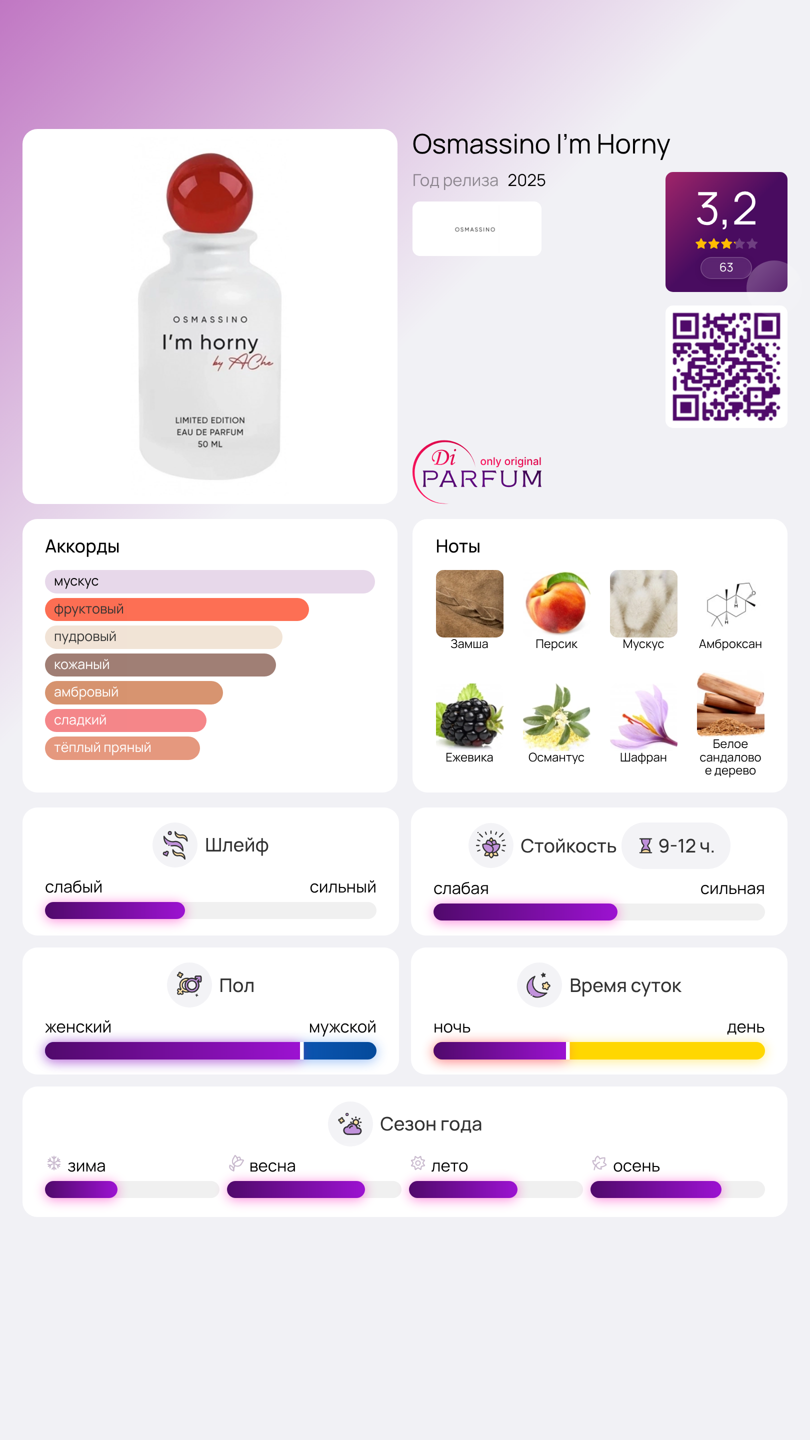 Этот аромат идеально подходит для тех, кто ищет в парфюмерии баланс между яркостью фруктов и утончённой элегантностью цветочных нот. Вдохновленный природой и современными трендами, он позволит вам чувствовать себя уверенно и привлекательно в любых обстоятельствах.