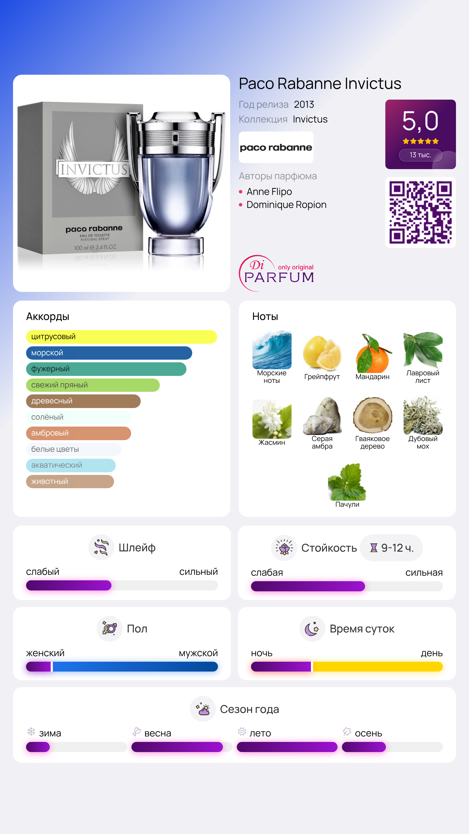 Парфюм Paco Rabanne Invictus создан для энергичных и активных мужчин. Название «непобедимый» подчеркивает стремление представителей сильного пола проявлять свою мощь и жизненную силу.