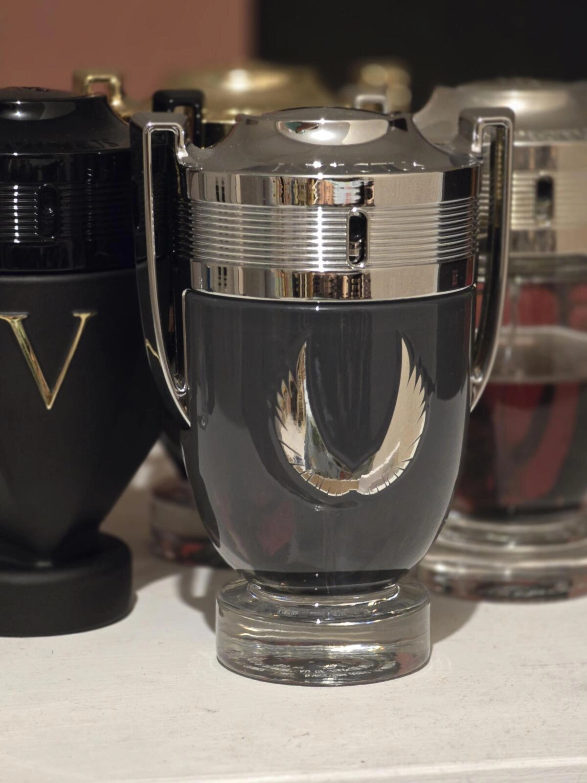 Влажный землистый мох обрамляется экзотическим кипарисом, а травяные пачули, которые являются основой фужера, добавляют смолистые оттенки. Invictus Platinum, представленная в 2022 году, считается девятым фланкером оригинального аромата 2013 года. На этот раз победитель и спортивный дух ассоциируются с платиной и лунным светом. Созданию аромата соответствует Олимпия – женская версия парфюмерного дуэта. Флакон выполнен в виде серого кубка с хромированными акцентами и украшен "фирменными" крыльями.