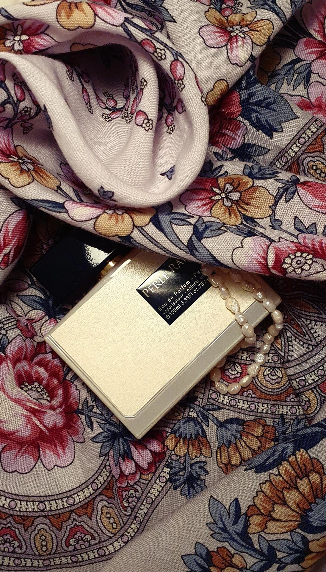 Начало аромата радует сочетанием нероли, османтуса и легкой ноты спелой груши. В сердце раскрывается микс цветов апельсина, жасмина и розы. Основные ноты представляют собой пачули, сандал и восхитительный кашмеран. Несмотря на его южный характер, Perle Rare считается более подходящим для осенне-зимнего времени года.