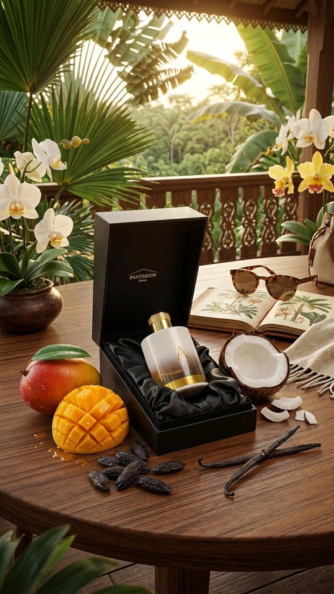 A от Pantheon Roma – это восточно-цветочный аромат для женщин и мужчин, который был представлен в 2023 году. За его создание отвечает парфюмер Arturetto Landi. Верхние ноты аромата открываются экзотическим сочетанием манго, кокоса и розового перца, переходя затем в цветочное сердце с нотами ириса, орхидеи и жасмина самбак. Базовые ноты включают в себя ваниль, бобы тонка, амбру, мускус и пачули, создавая глубокий и многослойный шлейф.