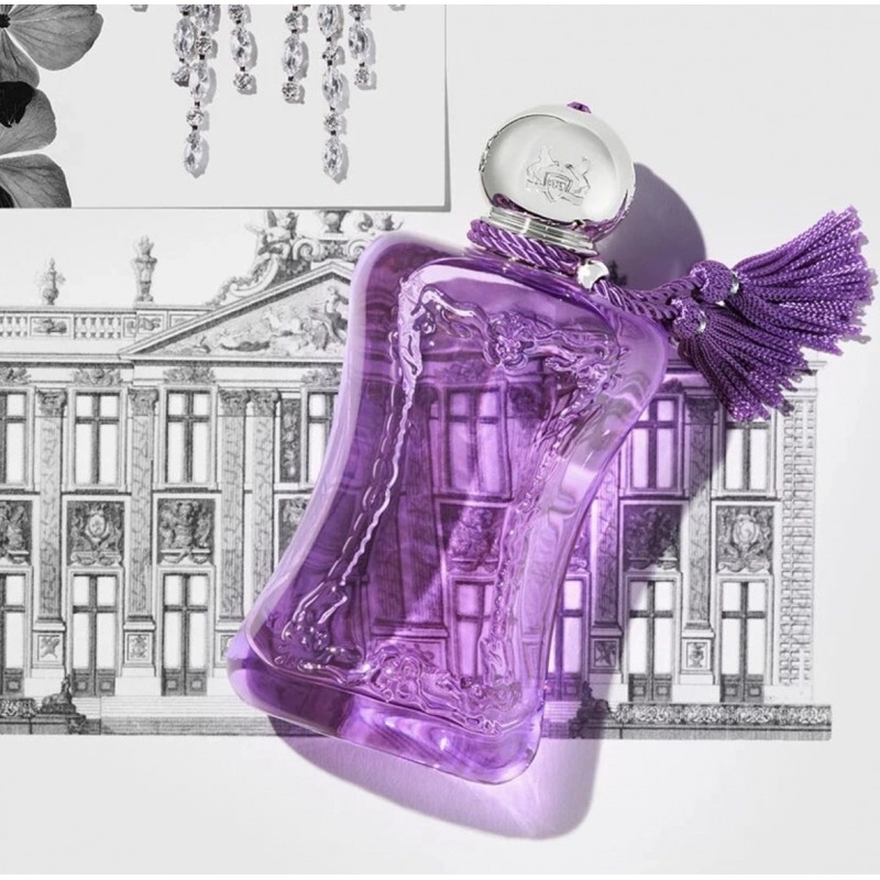 Элегантный флакон с нежным фиолетовым оттенком выделяется изысканным шнурком-подвеской. Parfums de Marly Palatine станет отличным компаньоном для уверенных в себе и свободных женщин, так что не стесняйтесь выражать свою яркость!