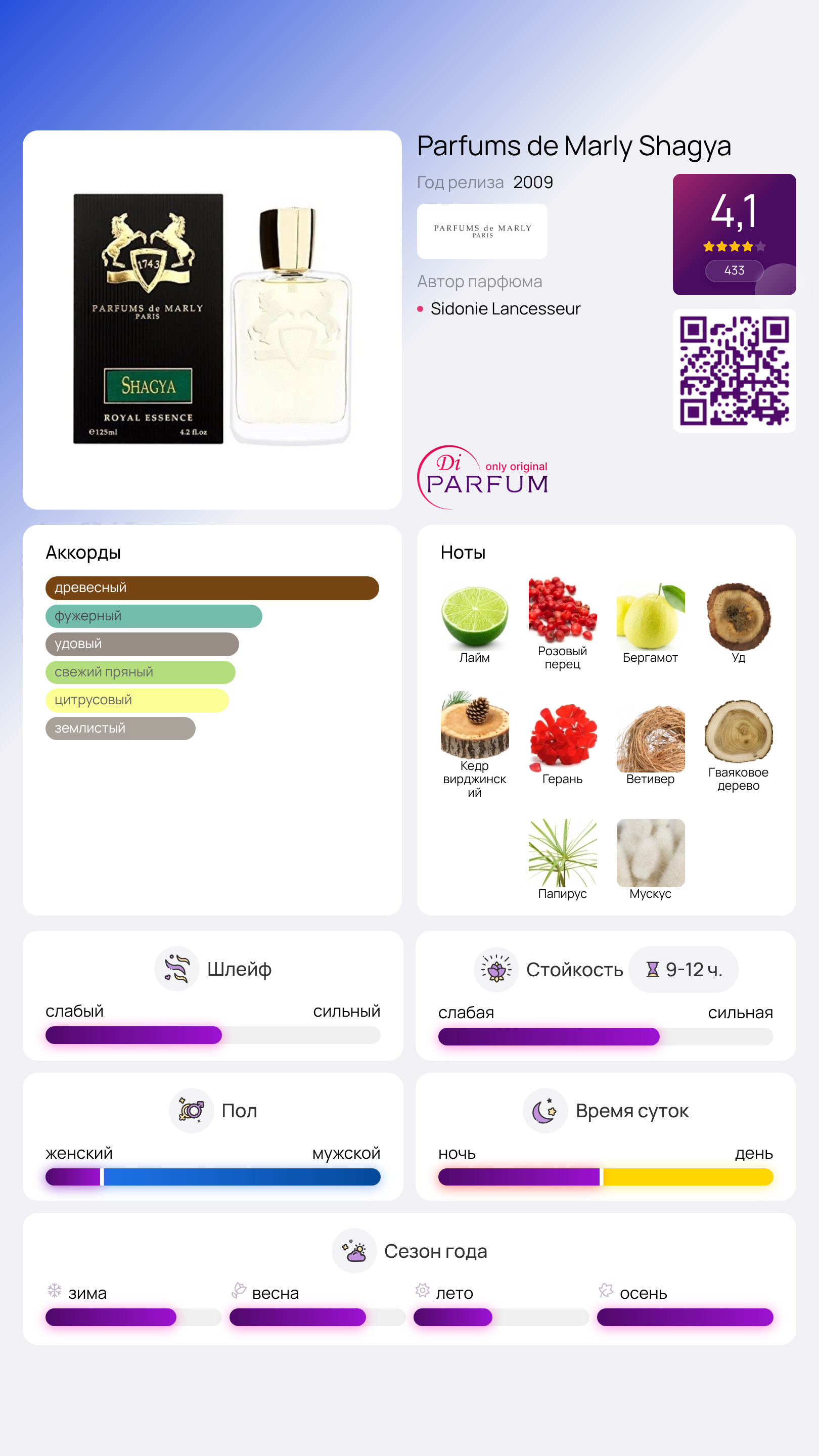 Аромат Shagya от французского бренда Parfums de Marly обладает несколько аристократичным древесно-восточным характером, символизируя изящество, благородство и любовь к светским мероприятиям, которые свойственны настоящим джентльменам, при этом актуален и в современном контексте.