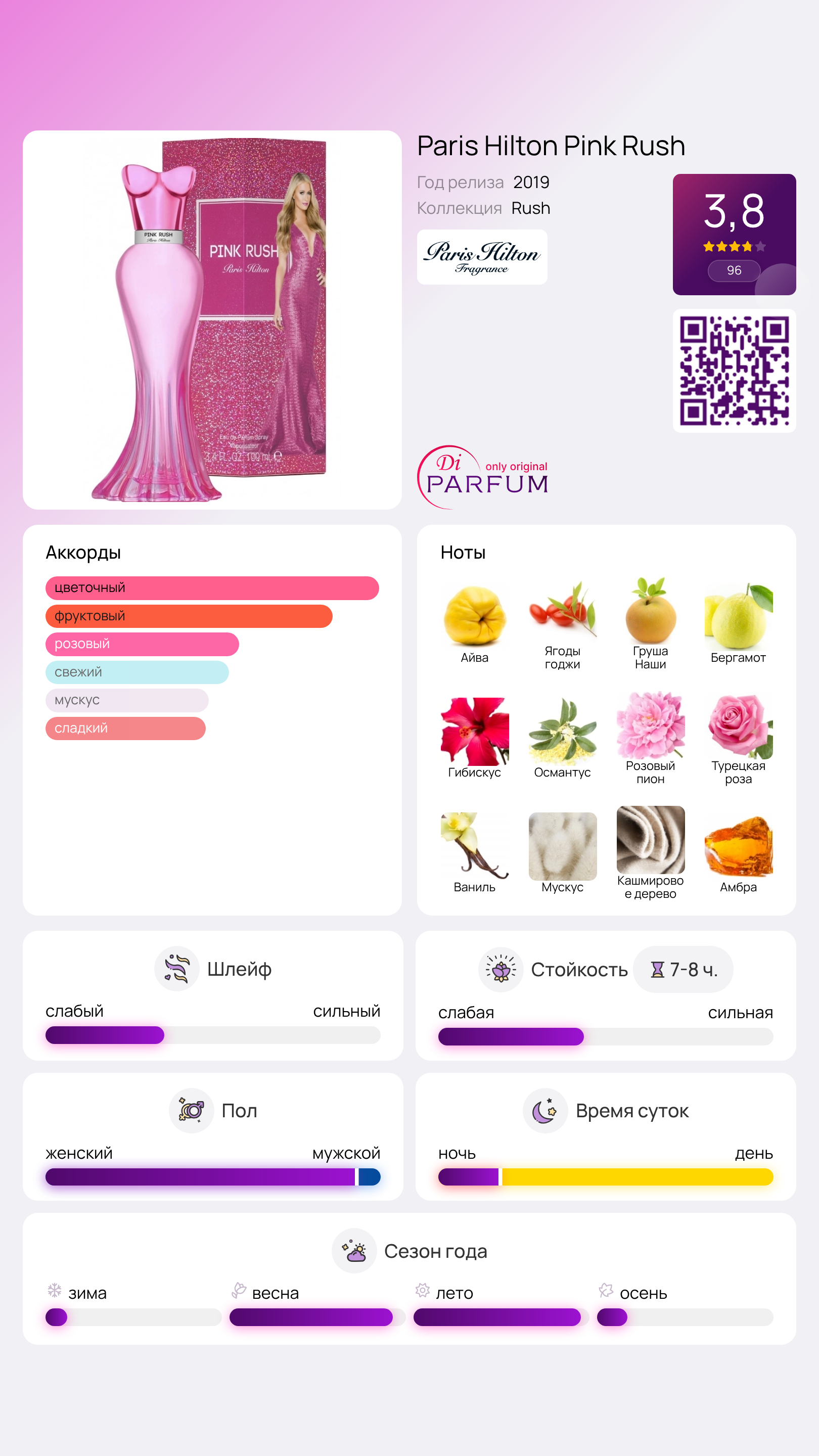 Pink Rush от Paris Hilton — это великолепный женский аромат, который был представлен в 2019 году. Этот парфюм погружает в мир цветочных и фруктовых нот, создавая уникальное и притягательное облако вокруг своей обладательницы.