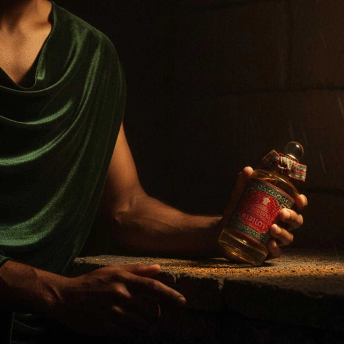 Композиция открывается резким пряным аккордом мускатного ореха, дополненным кисло-соленым оттенком шафрана, который придает мускату сухое звучание, обрамленное зелеными нотами кориандра. Вы можете ощутить аромат кофе, приправленного восточной ванилью, словно он приготовлен на углях, хотя кофейные зерна здесь отсутствуют.