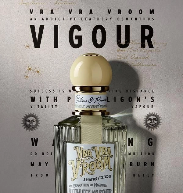 Абсолют османтуса с кожаными акцентами излучает энтузиазм, а в шлейфе присутствуют смолистые ноты ambrofix и теплые древесные оттенки Georgywood. Аромат Vra Vra Vroom от Penhaligon's, выпущенный в 2023 году, вошел в коллекцию зелий и снадобий Potions and Remedies. Этот парфюм создан известным «королевским» брендом из Великобритании.
