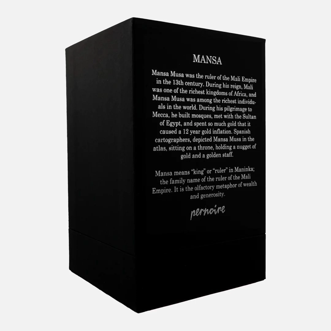 Слово «Mansa» переводится как «король» или «правитель» на манинка, что также связывает аромат с темой богатства и щедрости. Mansa является унисекс экстрактом парфюма с натуральными эссенциями, раскрывающим множество нюансов благодаря своим мускусным и древесным нотам.