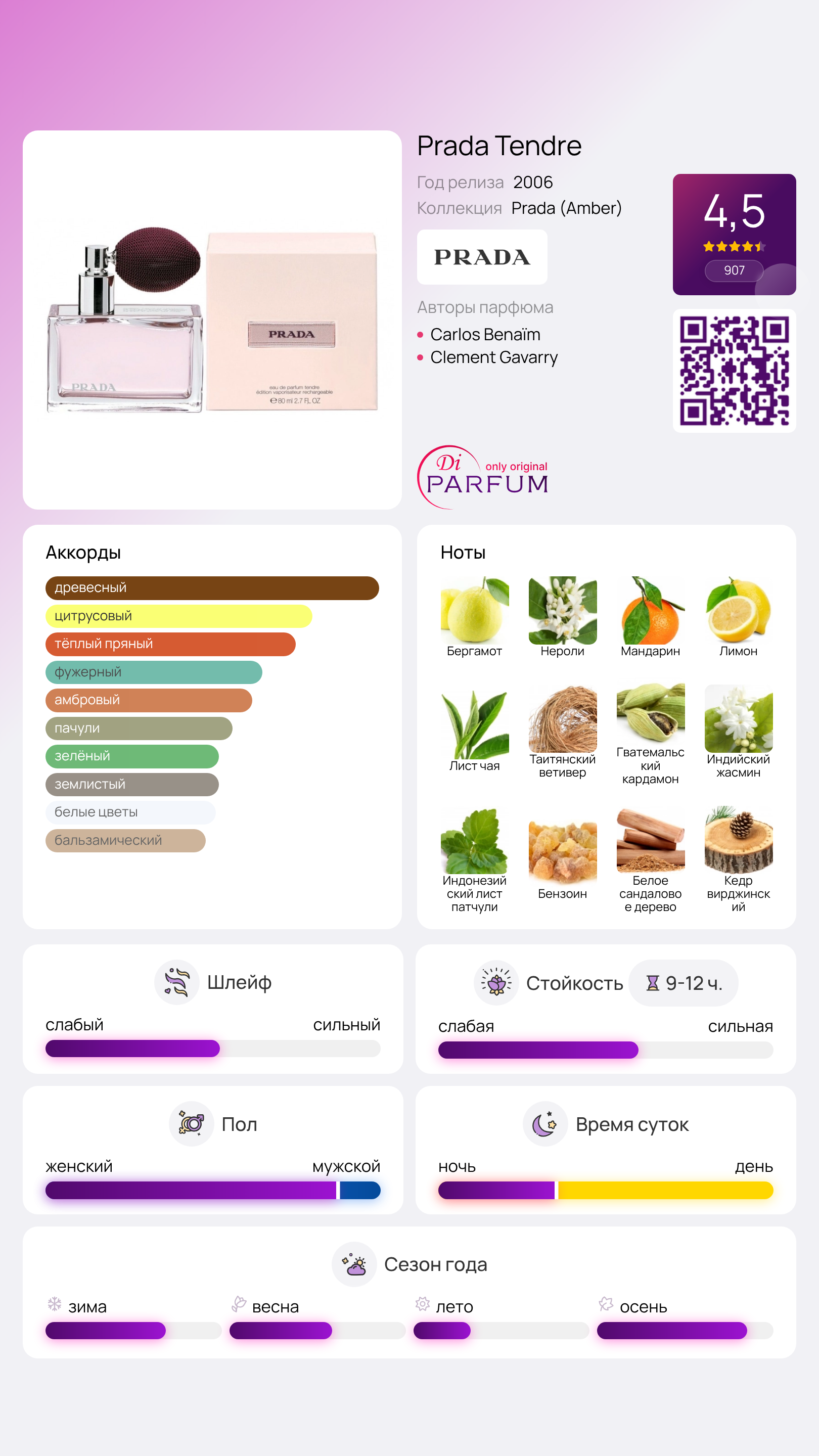 Итальянский бренд Prada представил новый женский аромат под названием Prada Tendre. Судя по названию, это облегченная версия оригинального аромата Prada. Его формула включает четыре ключевых компонента из первоначального запаха: сандал, пачули, лабданум и бензоин, которые теперь раскрываются по-новому.