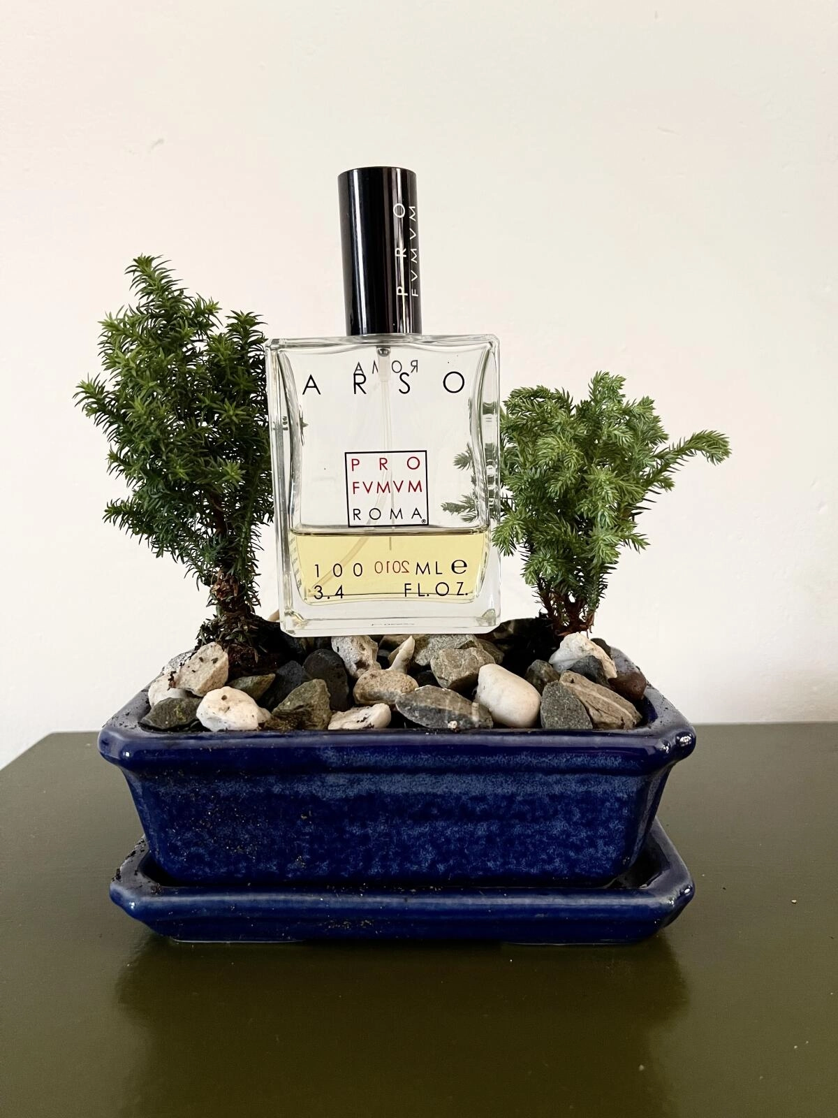 Сухие древесные аккорды кедра и сосны вызывают воспоминания о поцелуях среди деревьев. Ароматические смолы постепенно растворяются в вечерних тенях. Композиция Arso от Profumum Roma появилась на свет в 2021 году и является частью парфюмерного дуэта. Этот запах вызывает ассоциации с ожиданием праздника, когда в доме тепло, а за окном продолжается морозная зима.