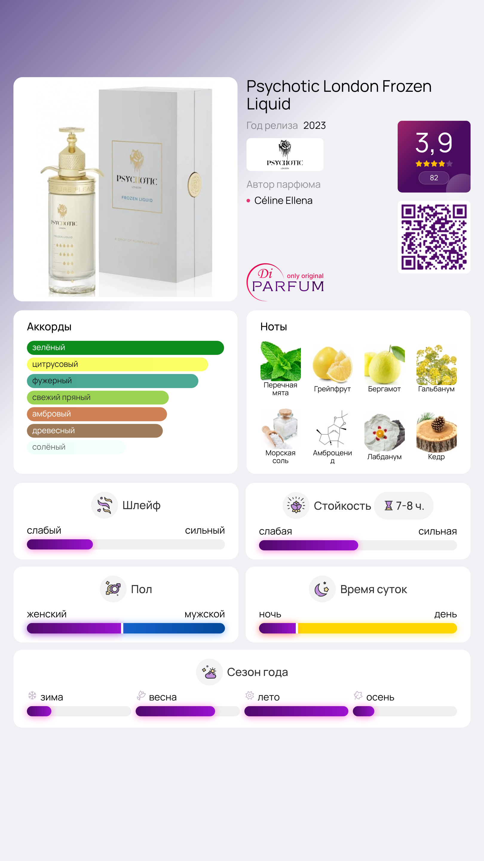 Frozen Liquid идеально подходит как для дневного, так и для вечернего носки, благодаря своей универсальности и свежести. Этот парфюм будет отличным дополнением к вашему образу и подчеркнет вашу индивидуальность.