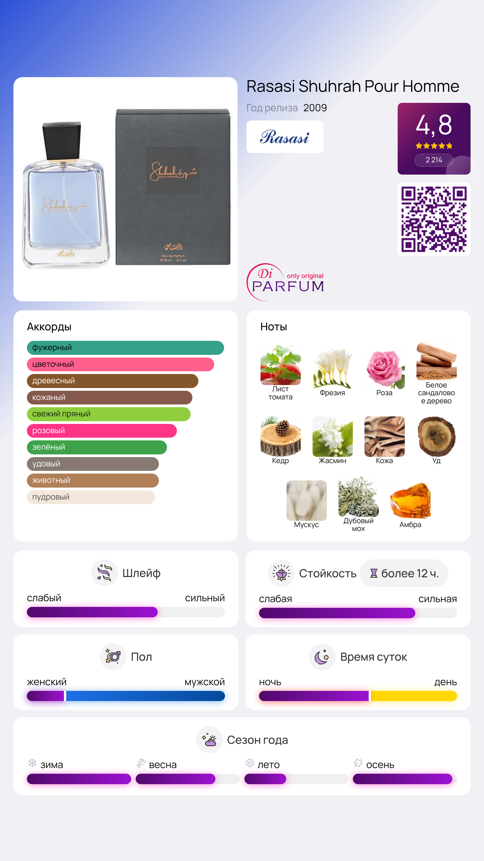Этот арабский бренд сумел предложить высокое качество по доступной цене, что явно прослеживается в мужском повседневном аромате Rasasi Shuhrah Pour Homme. Его уникальность и легкость в многослойном раскрытии привлекают многих, оставляя их в восхищении. Парфюм прекрасно сочетается с его строгим, но стильным флаконом, выполненным с толстыми стенками, черной крышкой и скромной бронзовой надписью — символом успеха и достижения целей.