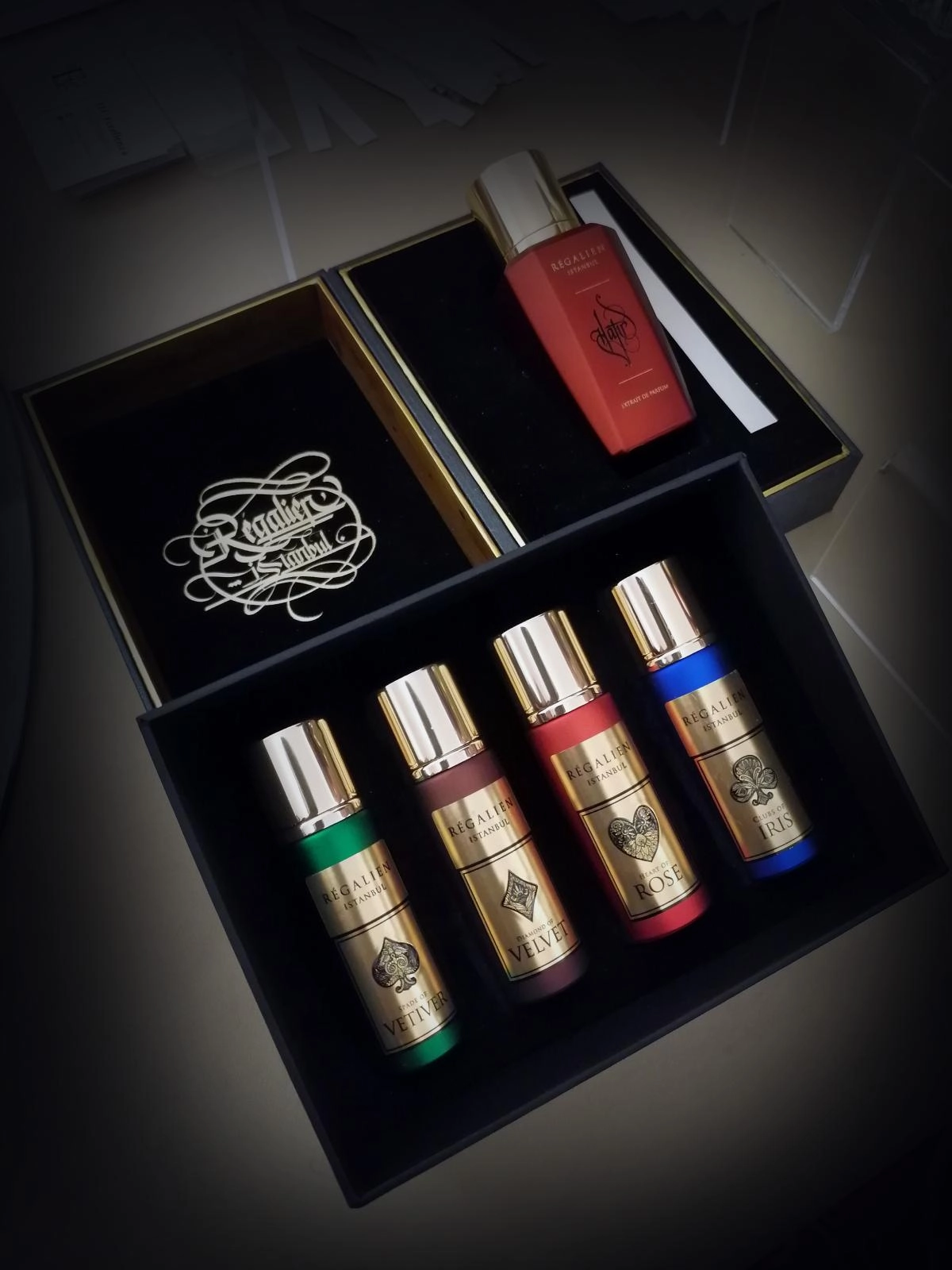 Композиторская виньетка Diamond Of Velvet от Regalien окутывает кожу теплыми аккордами, формируя целостный образ. Данная парфюмерия была представлена в концентрированной форме extrait de parfum на выставке ESXENCE-2019 в рамках коллекции Luxury от Regalien. Элегантный флакон, украшенный символикой трефы, ориентирован на мужчин и женщин, ценящих уход за собой с помощью уникальных парфюмерных шедевров.
