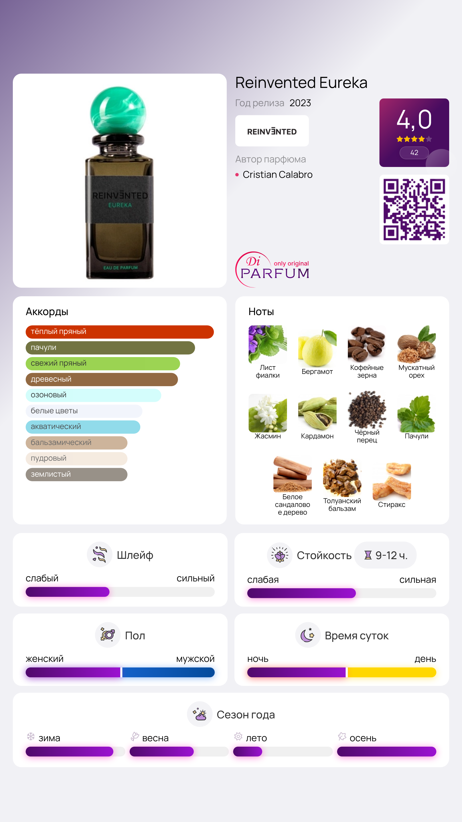 Очаровательная линейка от итальянского нишевого парфюмерного бренда включает четыре удивительные композиции, каждая из которых открывает новые грани природы. Один из представителей этой коллекции, аромат под названием Reinvented Eureka, олицетворяет суть перерождения живых существ.