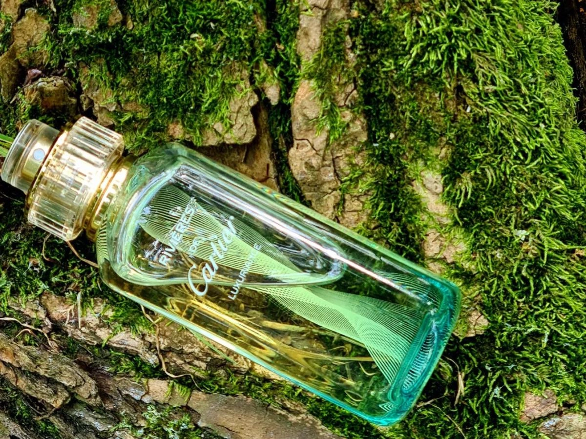 Флакон парфюма выполнен в пастельных зелёных тонах с градиентным переходом, а элегантная рифленая крышечка создает атмосферу гармонии. Аромат скрывает в себе свежесть природы: стоит только чуть распылить его, как вокруг раскрывается живописное зеленое поле с росистой травой, среди которой выделяются яркие ноты папоротника, а бальзамические и древесные ароматы уносят к целебным источникам. Вдалеке слышен звук воды, а в воздухе витает легкая горечь герани, усиливаемая приятными хвойно-лимонными акцентами розмарина.